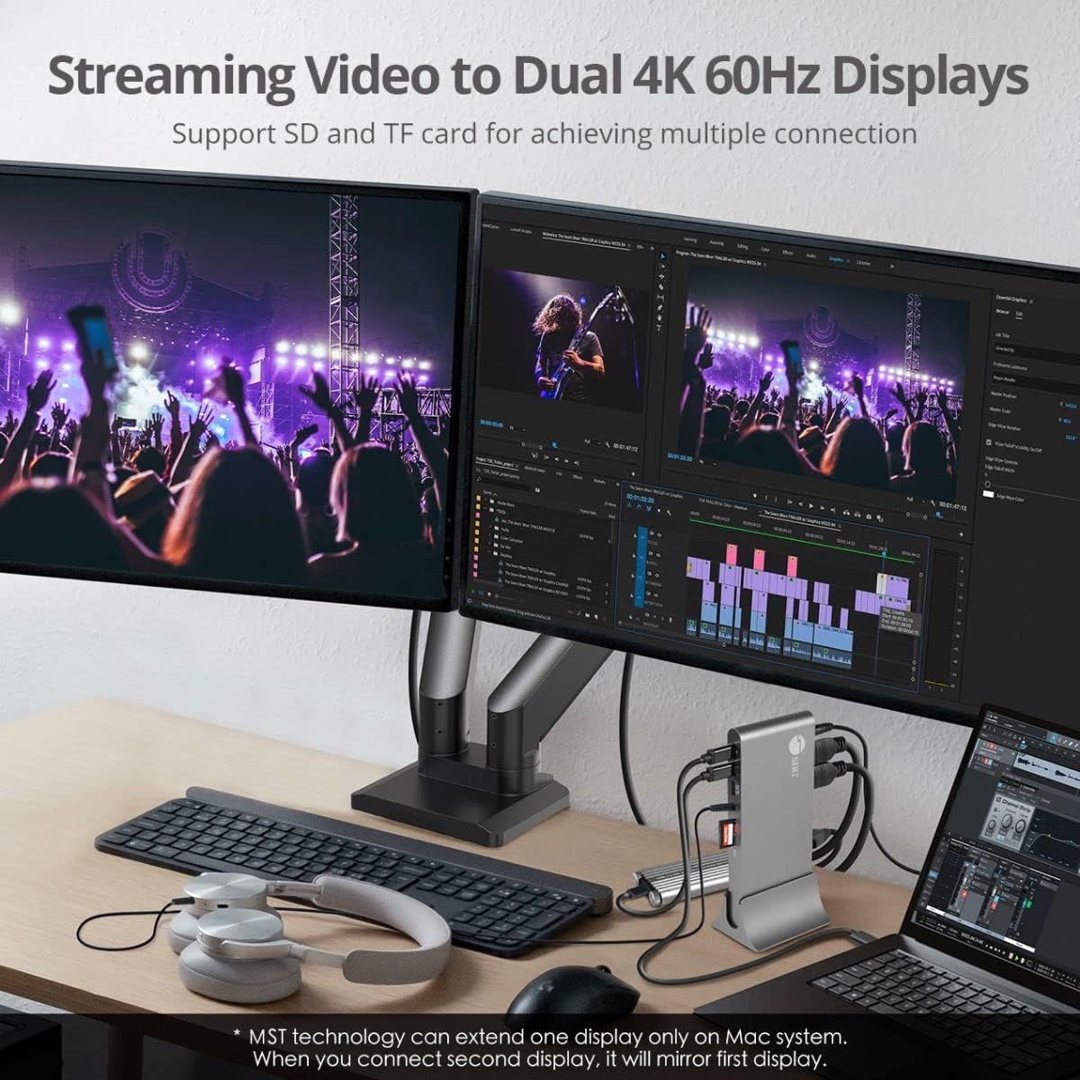 Dual 4K HDMI: The docking station features Multi-Stream Transport (MST) technology to extend the video signal from your laptop or desktop to two HDMI displays, monitors or projectors.