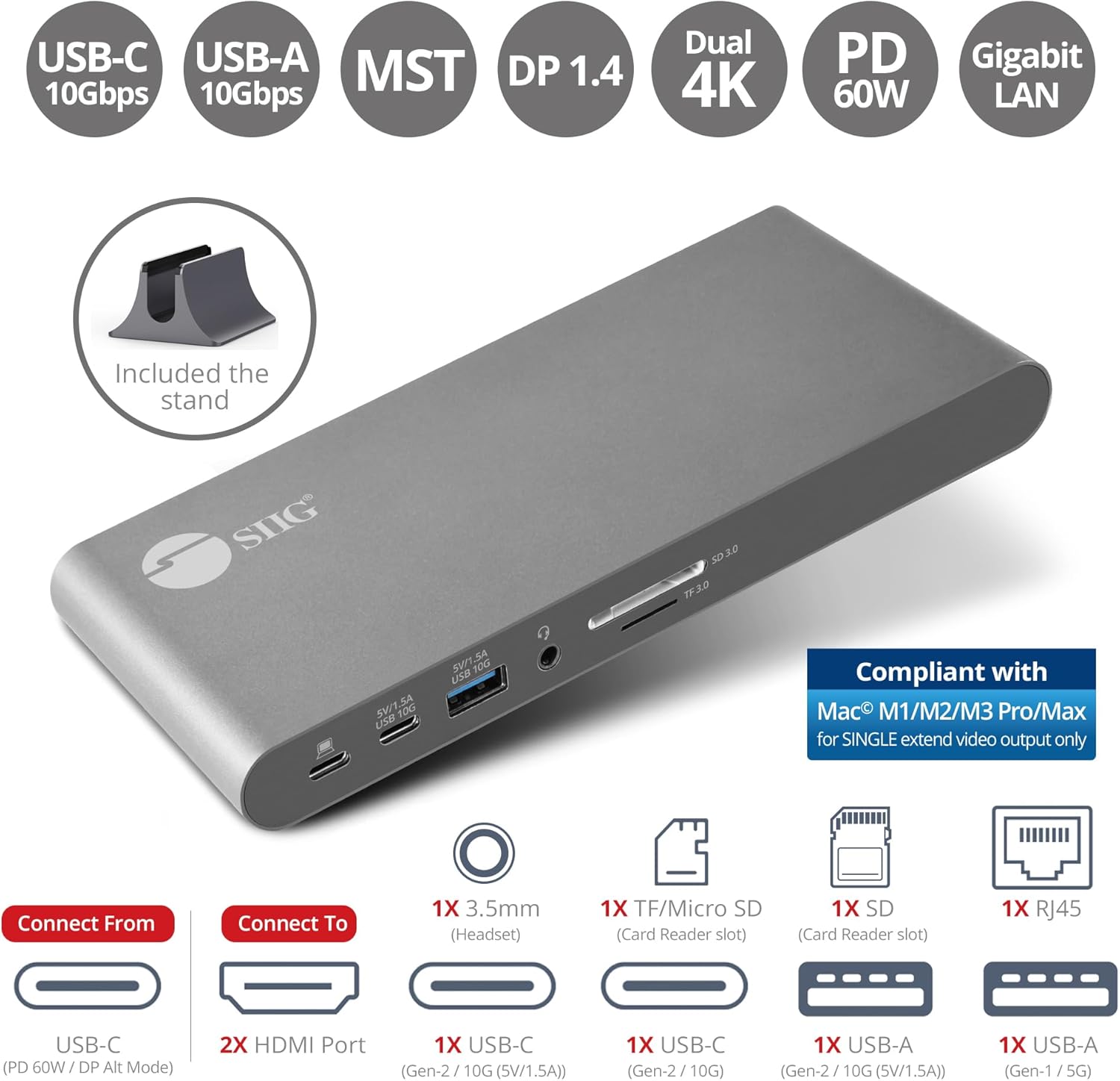 SIIG 4K USB-C MST Docking Station Dual Screen 4K60Hz for…