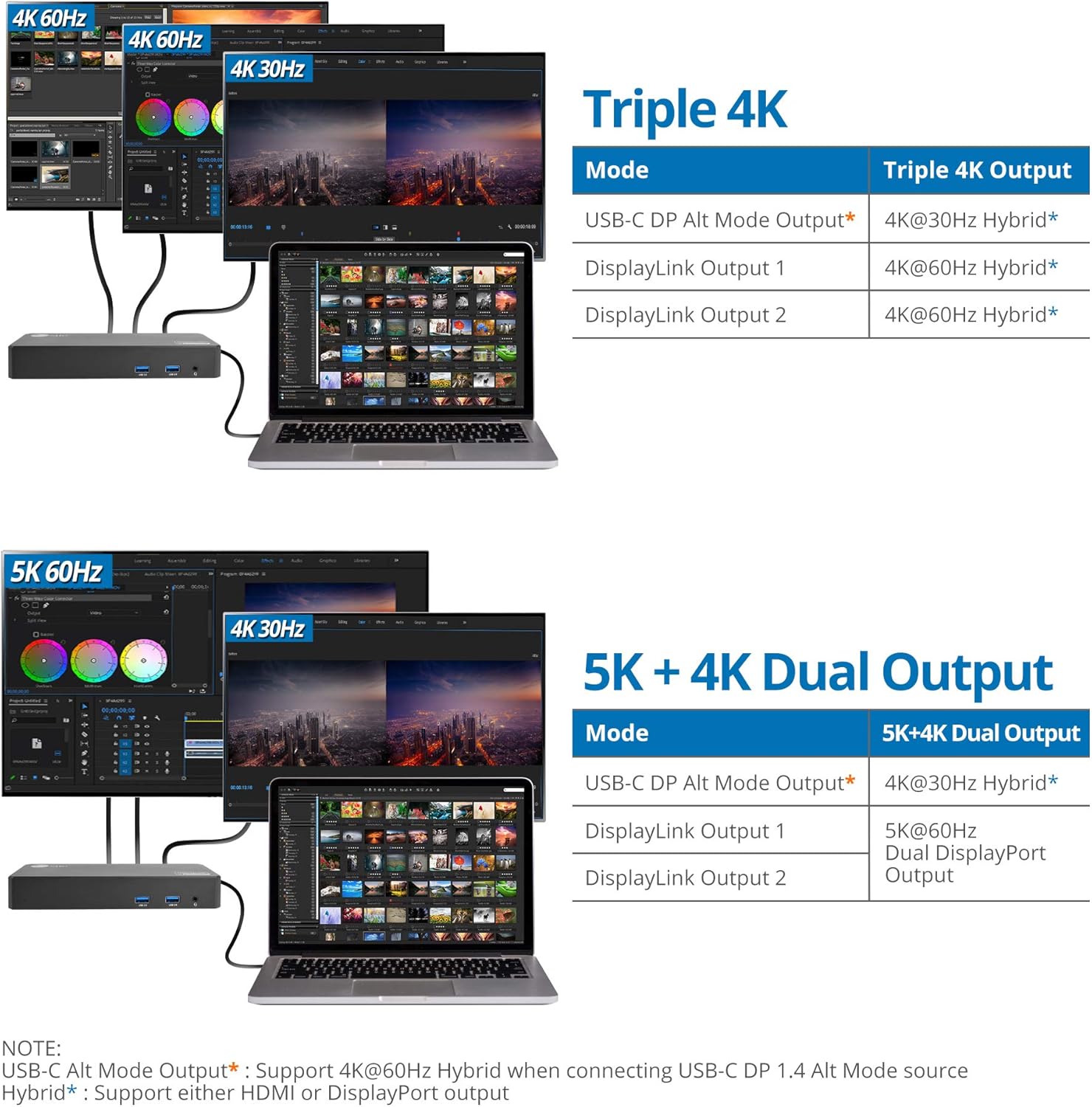 ✅ Supports a single 5K (5120×2880) @60Hz display via 2 x DisplayPort, or two Ultra HD 4K (4096×2160) @60Hz displays via DP/HDMI or DP/DP or HDMI/HDMI, or a single 4K (4096×2160) @60Hz display (DP or HDMI)