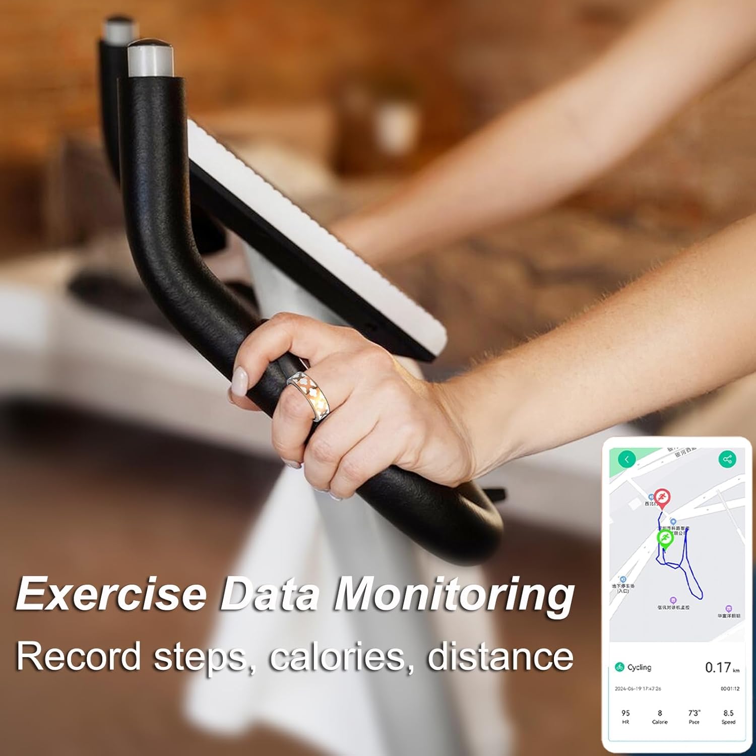Physical monitoring conditioning ring throughout the day: track your steps, calorie consumption and distance automatically. Turn on sports modes in the application, the fitness ring will also track its sports route, activity time and cardiac art rate during exercise, this allows you to know when you must save motivation or maintain hard exercise, you will also inform you of sports performance in real time.