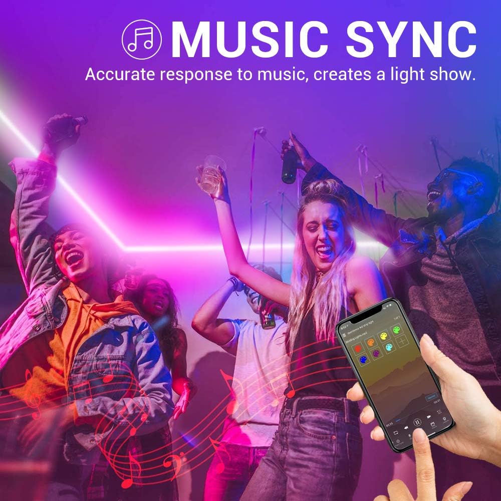 Musical synchronization: Synchronize your LED strip to any music or voice and change of light along with the rhythm.