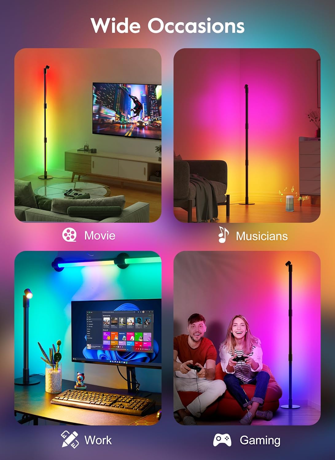 Our floor lamp is not only an RGB ambient light, but also an eye-protecting desk lamp or piano lamp. The lamp tubes can be installed or removed at will. You can adjust the height and brightness of the lamp according to your needs.