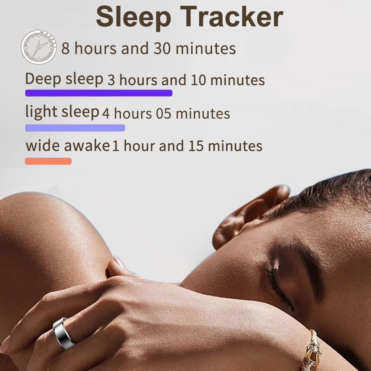 【Intelligent sleep ring】 Incorporated sleep tracker to monitor the sleep duration of the night last night, the light sleep time, the deep sleep time and the awake time. Not only that, but you can also verify your sleep state during the past week or even a month to completely understand your sleep and quality habits. Based on a comprehensive sleep quality analysis to help you develop good sleep habits.