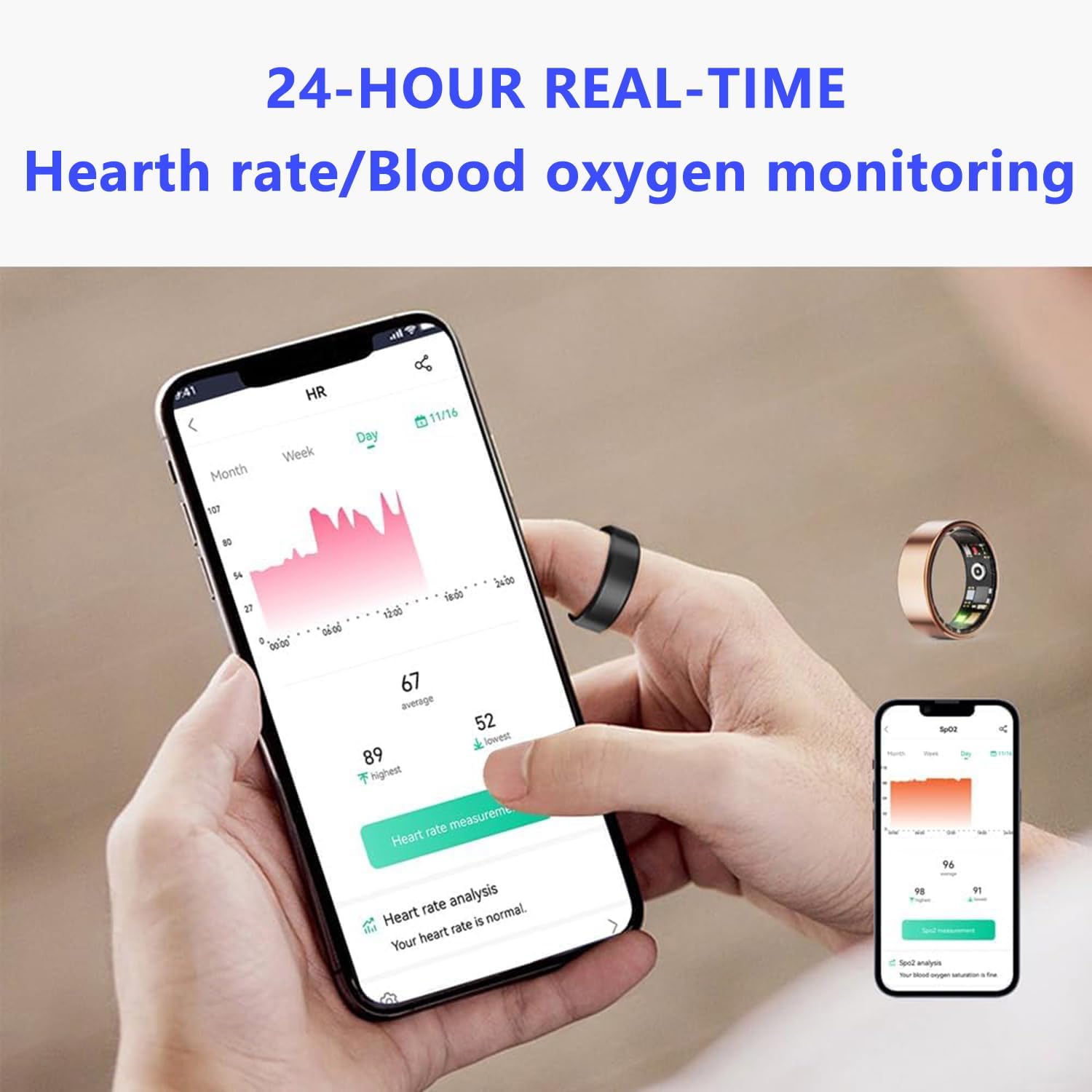 Smart Ring: The smart ring health tracker can monitor your dream, heart rate, blood pressure, blood oxygen and daily exercise through the 24 -hour application, is compatible with Android 5.0 and higher than the system and apple iOS10.0 and higher than the system