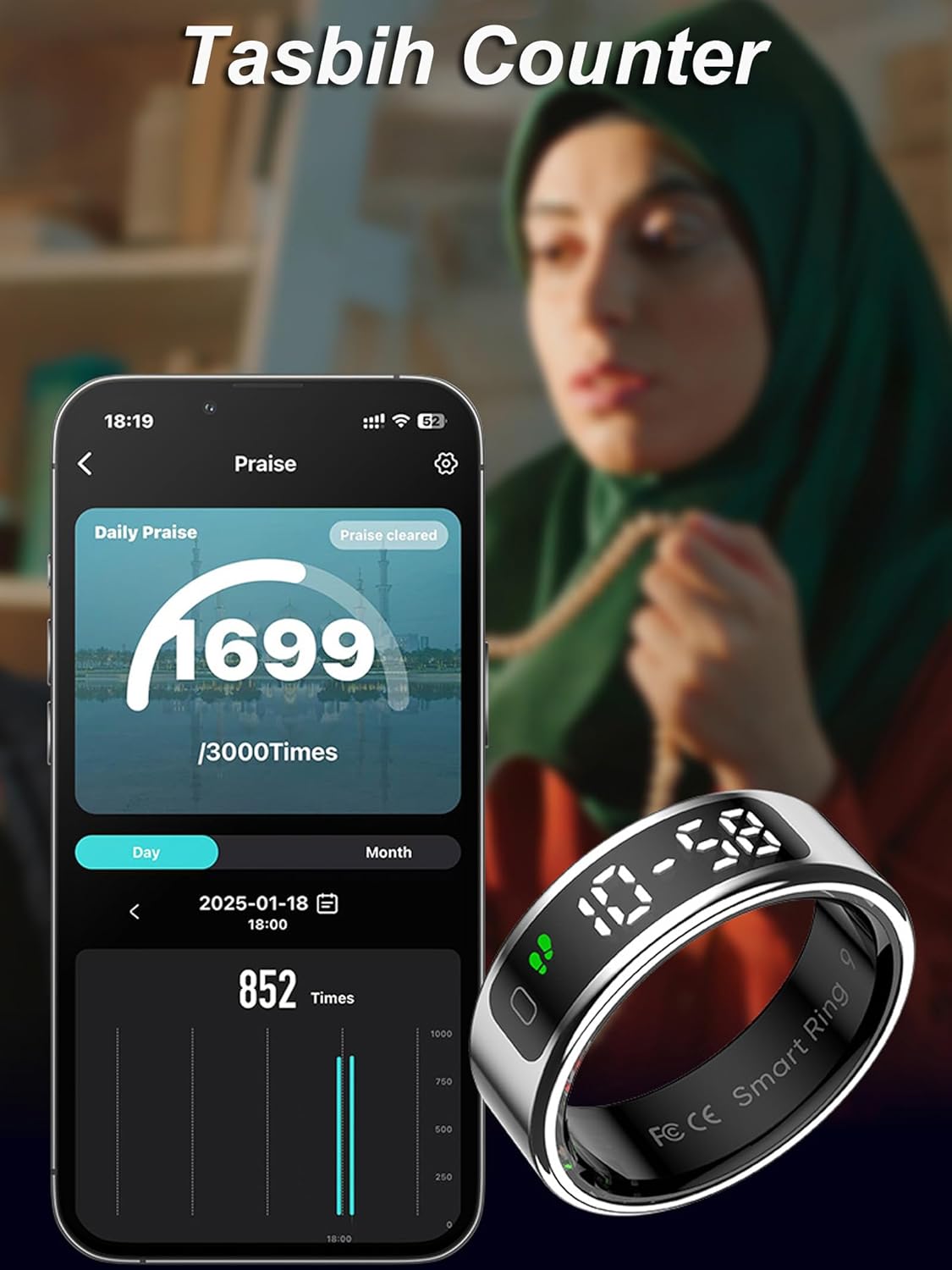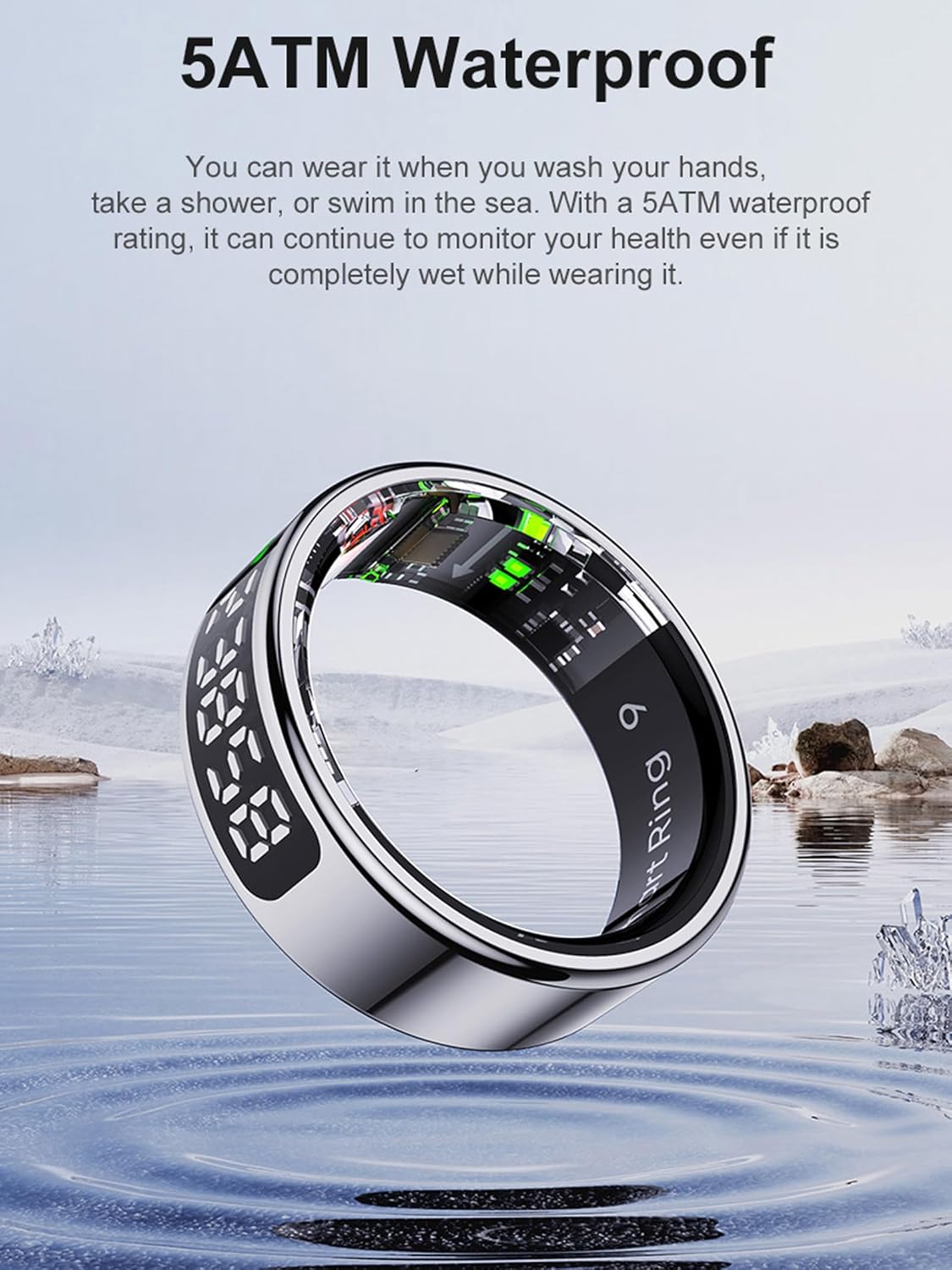 Intelligent sleep ring: The incorporated automatic sleep tracker can monitor its sleep duration at night and provide comprehensive sleep quality analysis (deep sleep time, light sleep time and attention time), allowing you to develop good sleep habits.