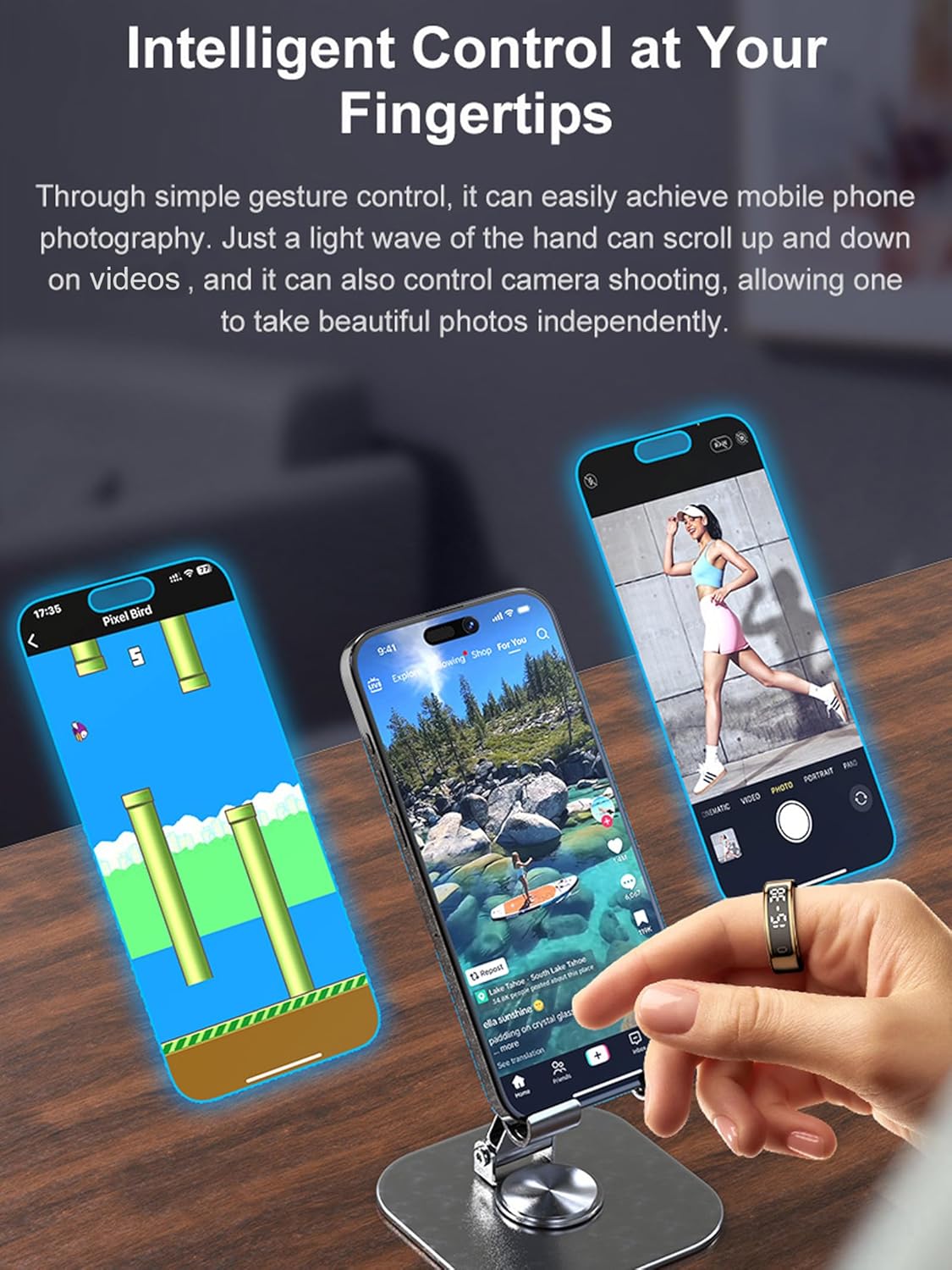 Waterproof gesture control ring: This smart ring admits gesture interaction, you can use it to take the phone from the phone remotely, change short videos, pause or play music. Free your hands and give yourself convenience in daily life. IP68 Fría Shower Waterproof Ring, washed hands and rain.