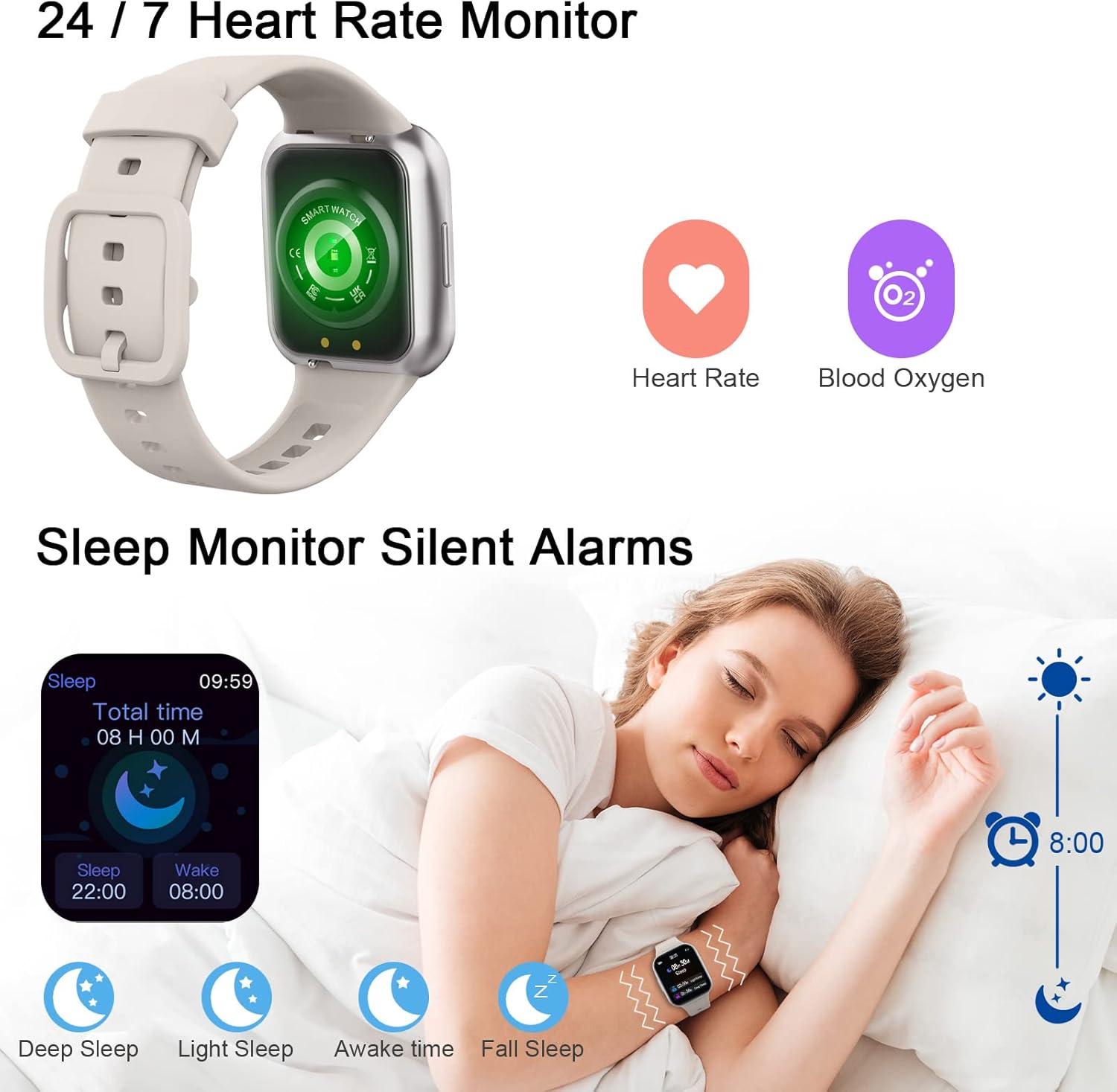 1.69'' HD Display & Unlimited Customization: Smart watches for women with 1.69'' TFT-LCD high-definition display makes it easy to operate and responsive, experience crystal-clear images like never before. Adjustable 4-level brightness allows you to read the time and data clearly even under the glare. Moreover, 100+ trend-setting combinations to match your mood and outfit of the day. Even create and customize your own fitness watch faces from your phone gallery.