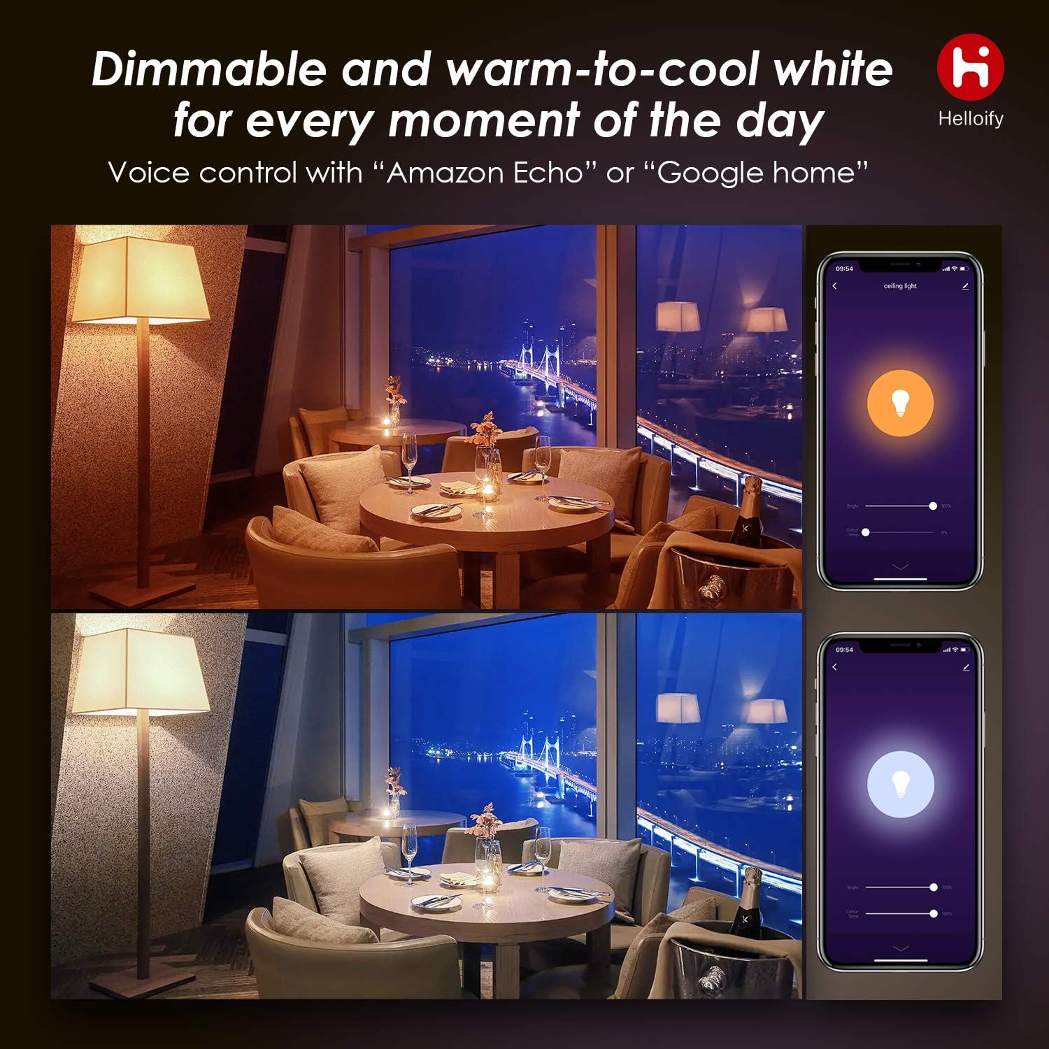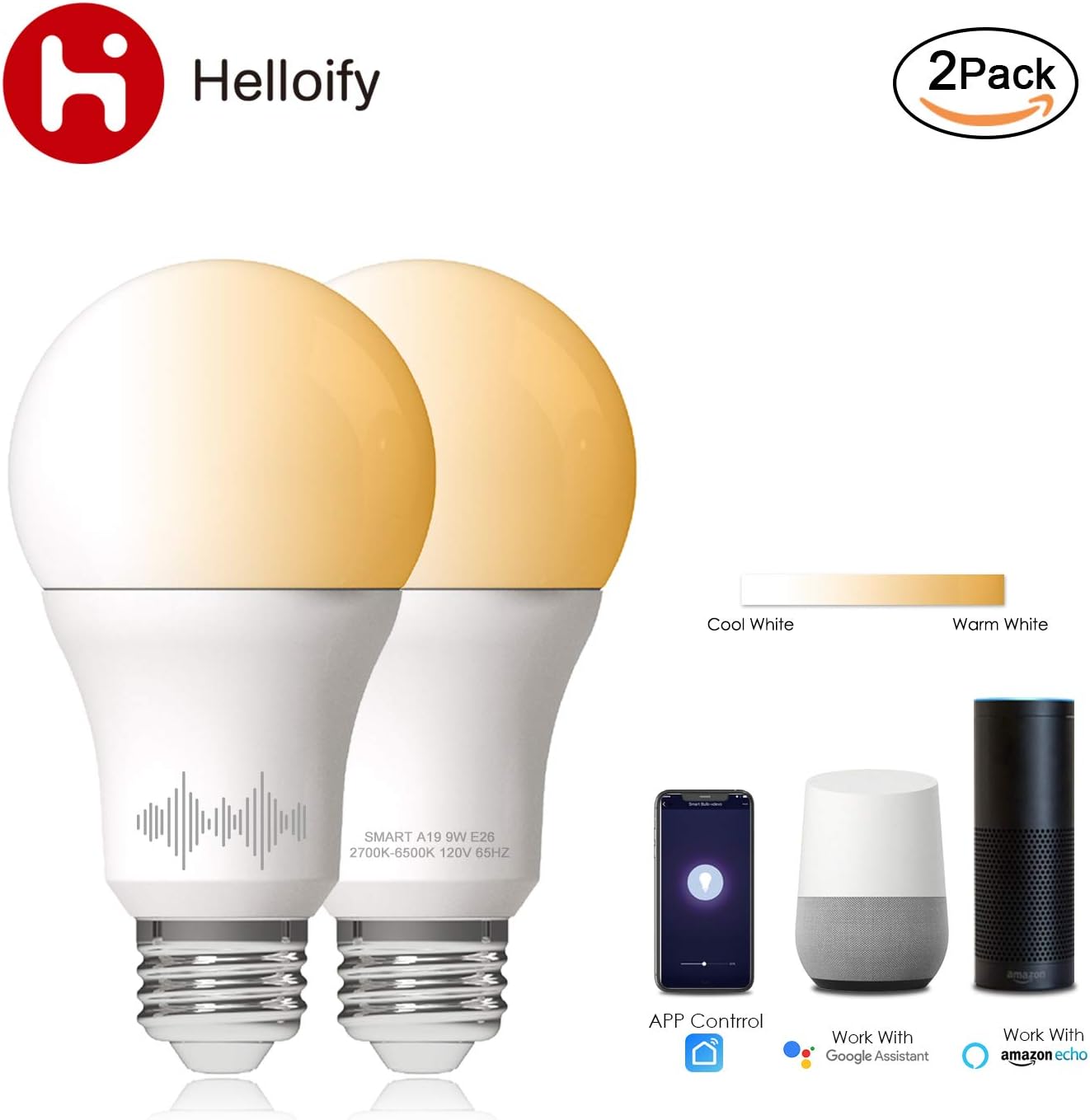 Helloify High Brightness LED Smart Bulb: We always hear people complain that smart bulbs are not bright enough for colored light, but Helloify smart bulbs always keep high brightness, from 2700K to 6500K and 806 lumens, perfect for your needs, make changes in the home with your mood