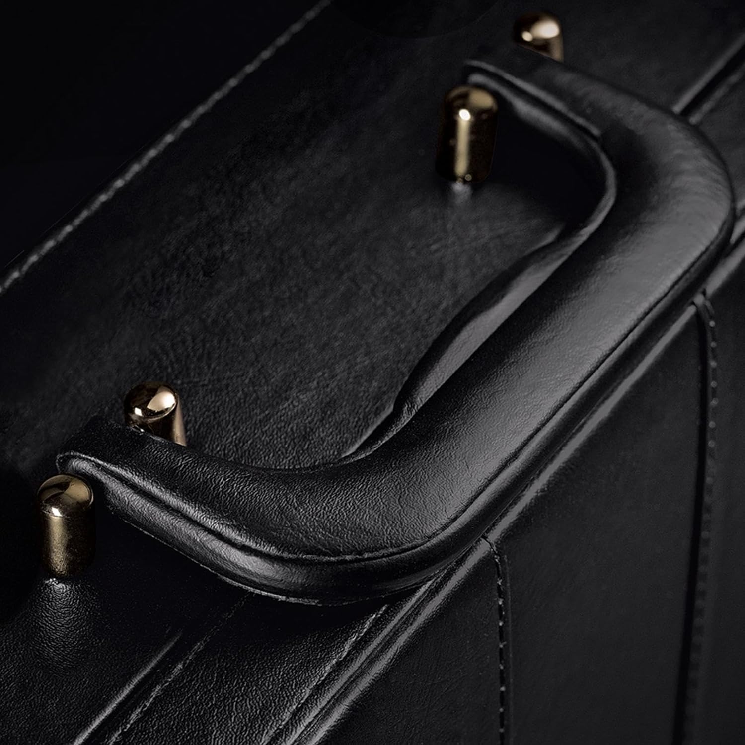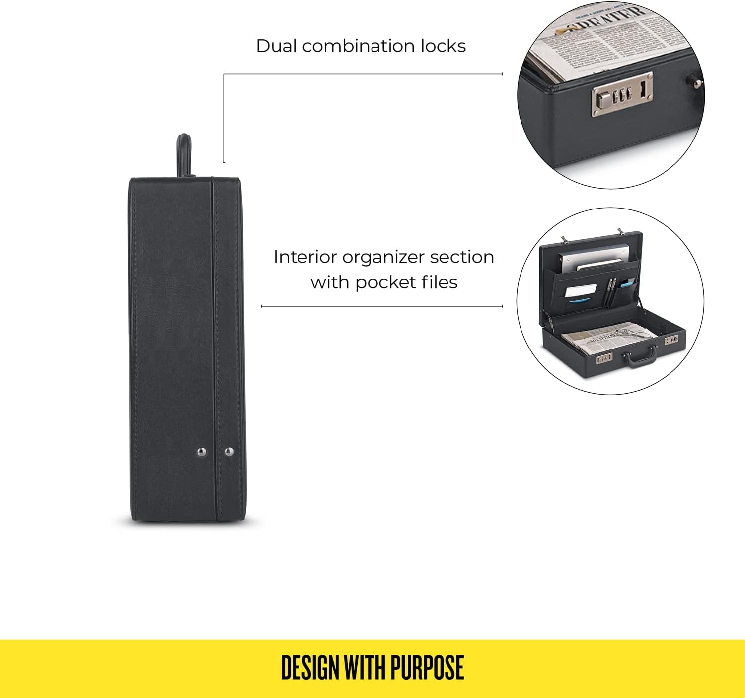 Black Attached Briefcase: This classic black briefcase has a large-capacity main compartment, an interior organizer section, a file pocket with Velcro closure, and two combination locks to keep your essentials secure.