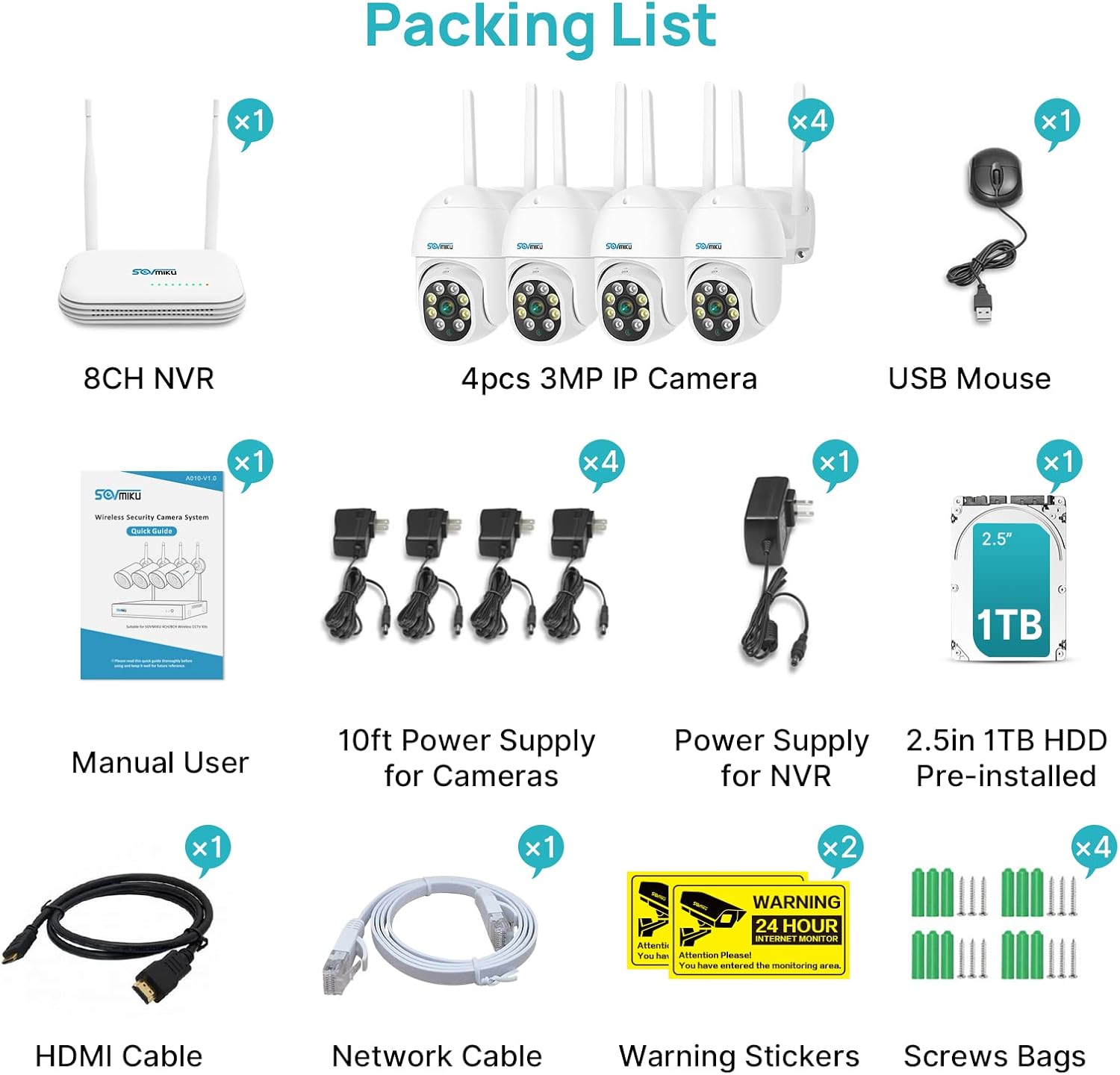 【IP65 Waterproof & NO Worry Purchase】Our security camera system has been tested through hail storms, gusty winds, heavy rains, scorching heat, and snow, it is suitable for installation outdoors or indoors. We offer a 1-year limited Maintenance and lifetime technical support. Please feel No worries to contact us via email and Amazon messaging. We always endeavor to assist our customer with the best of our service!
