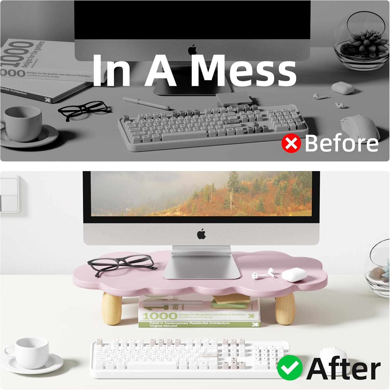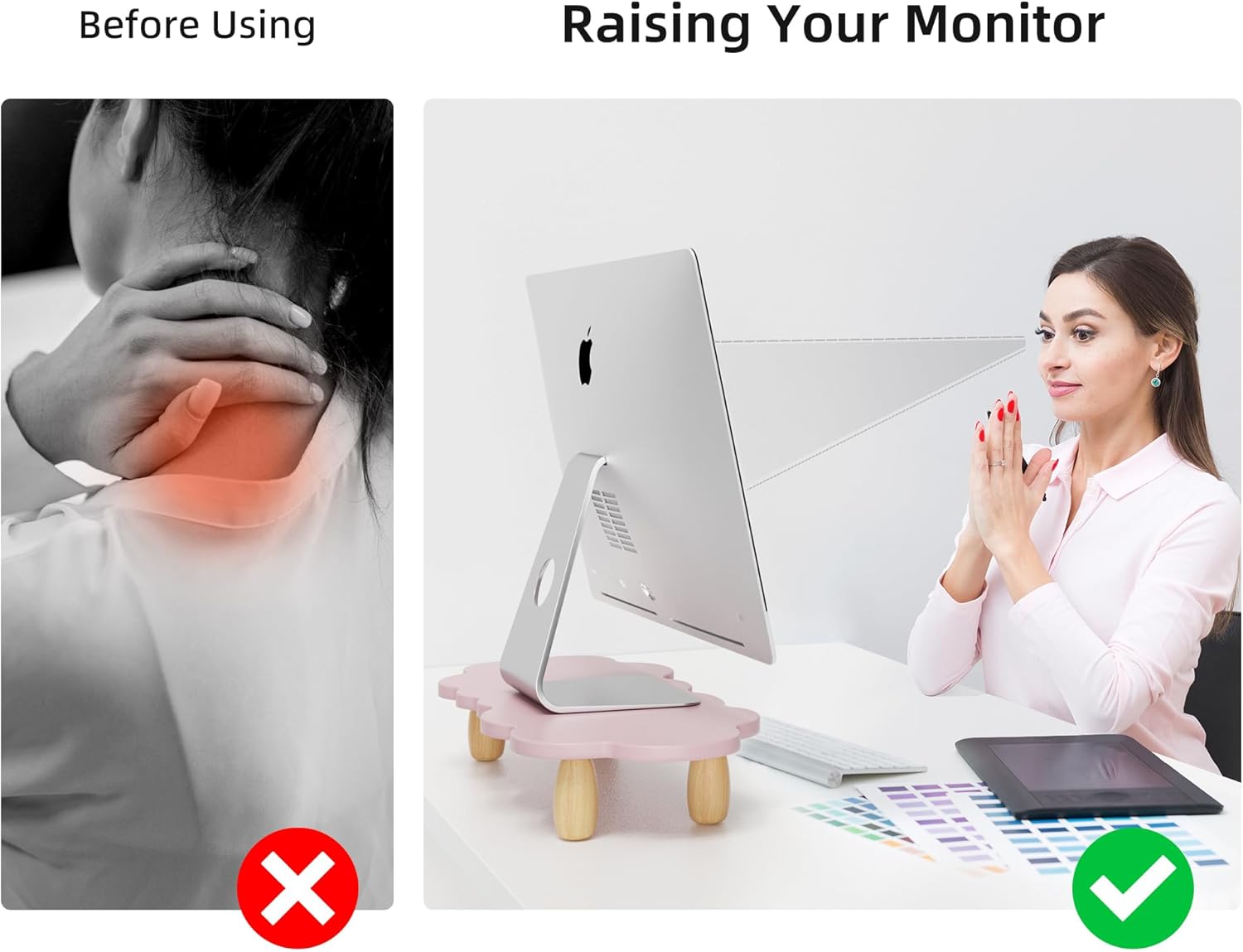 【Ergonomic design】 presented an ergonomic design, the AFOOYO monitor support raises the screen of its monitor to a comfortable eye level (approximately 3.2 inches) to relieve stress in the neck, shoulders and back, and improve job efficiency.