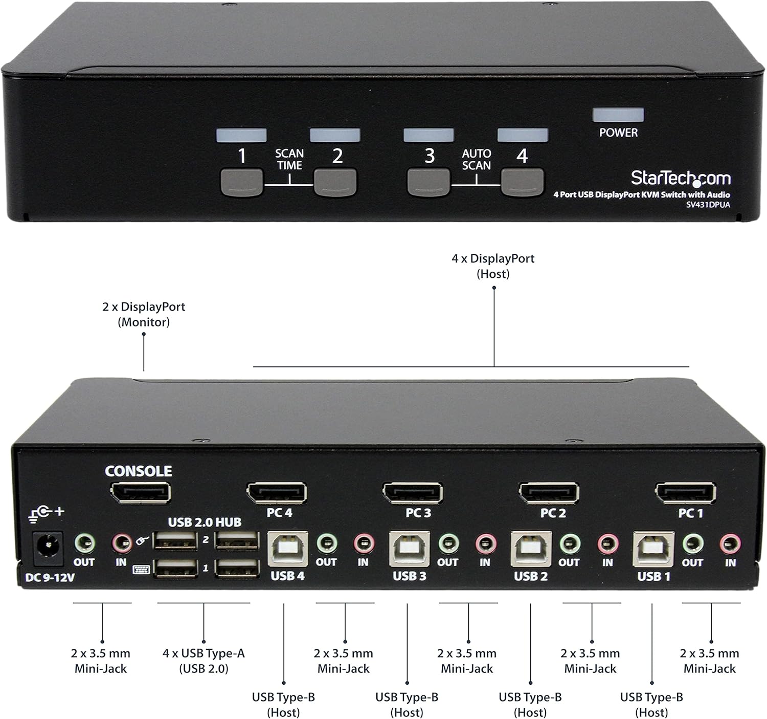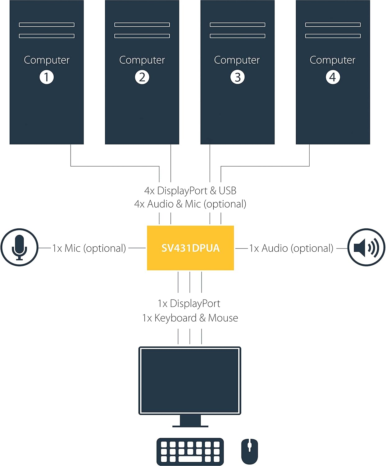 StarTech.com 4-Port DisplayPort KVM Switch with Audio – USB, KVM Switches