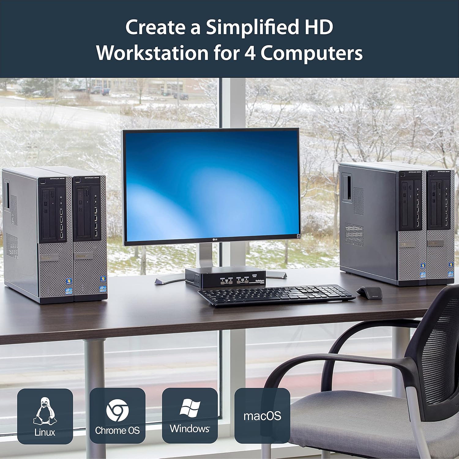 4-COMPUTER WORKSTATION: Share a keyboard, mouse, and DisplayPort monitor between four Windows or Mac computers. The 4-port switch also features a built-in USB 2.0 hub that enables sharing of USB peripherals, eliminating the need for duplicate devices.