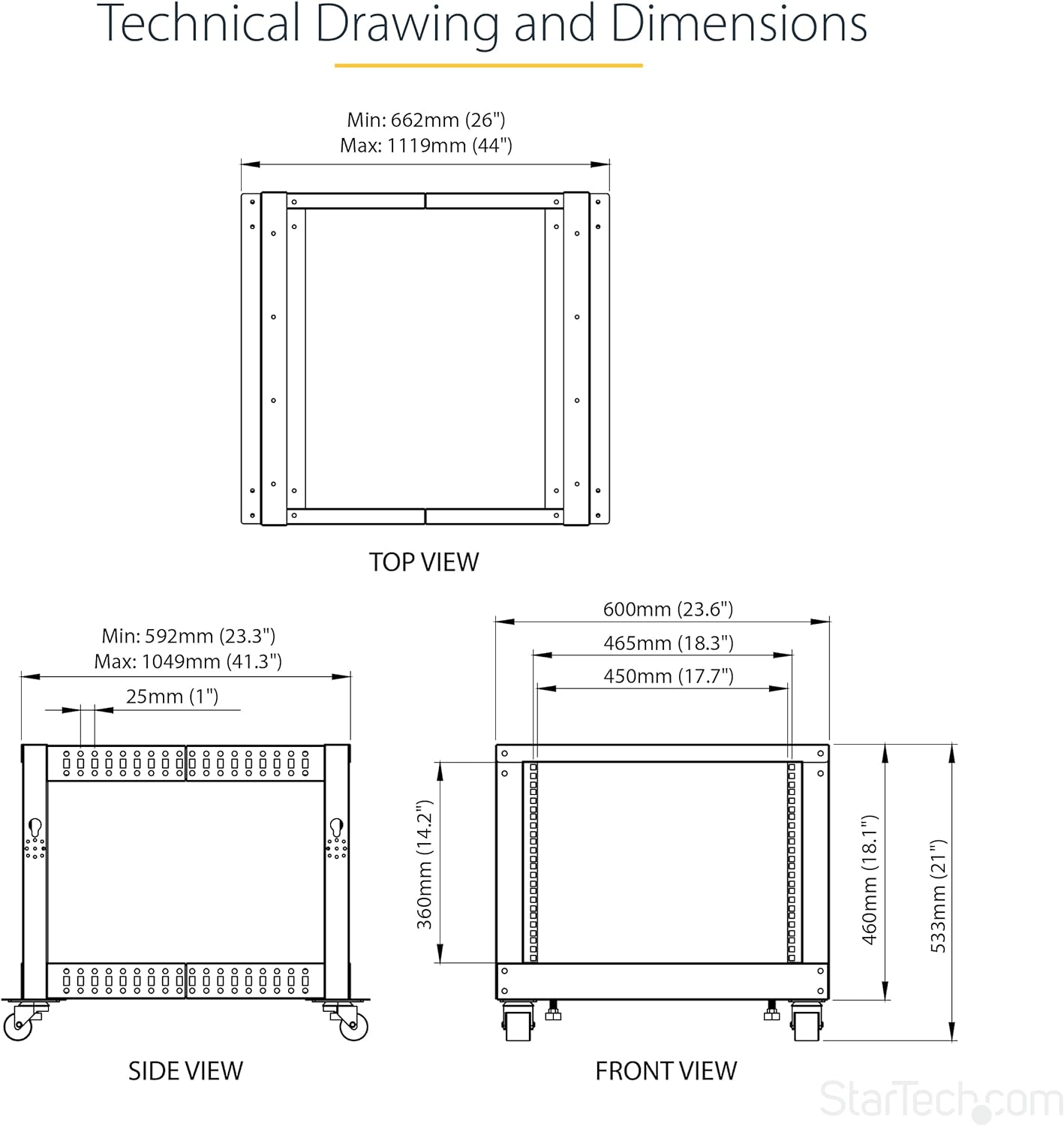 Easy Ensemblation: Rack Mobile Rack with easy bun and online video enforcement instructions; Compact flat package shipping to avoid damage and facilitate installation; Only 18 inches (46 cm) high, ideal for utility/server or narrow house/office harons