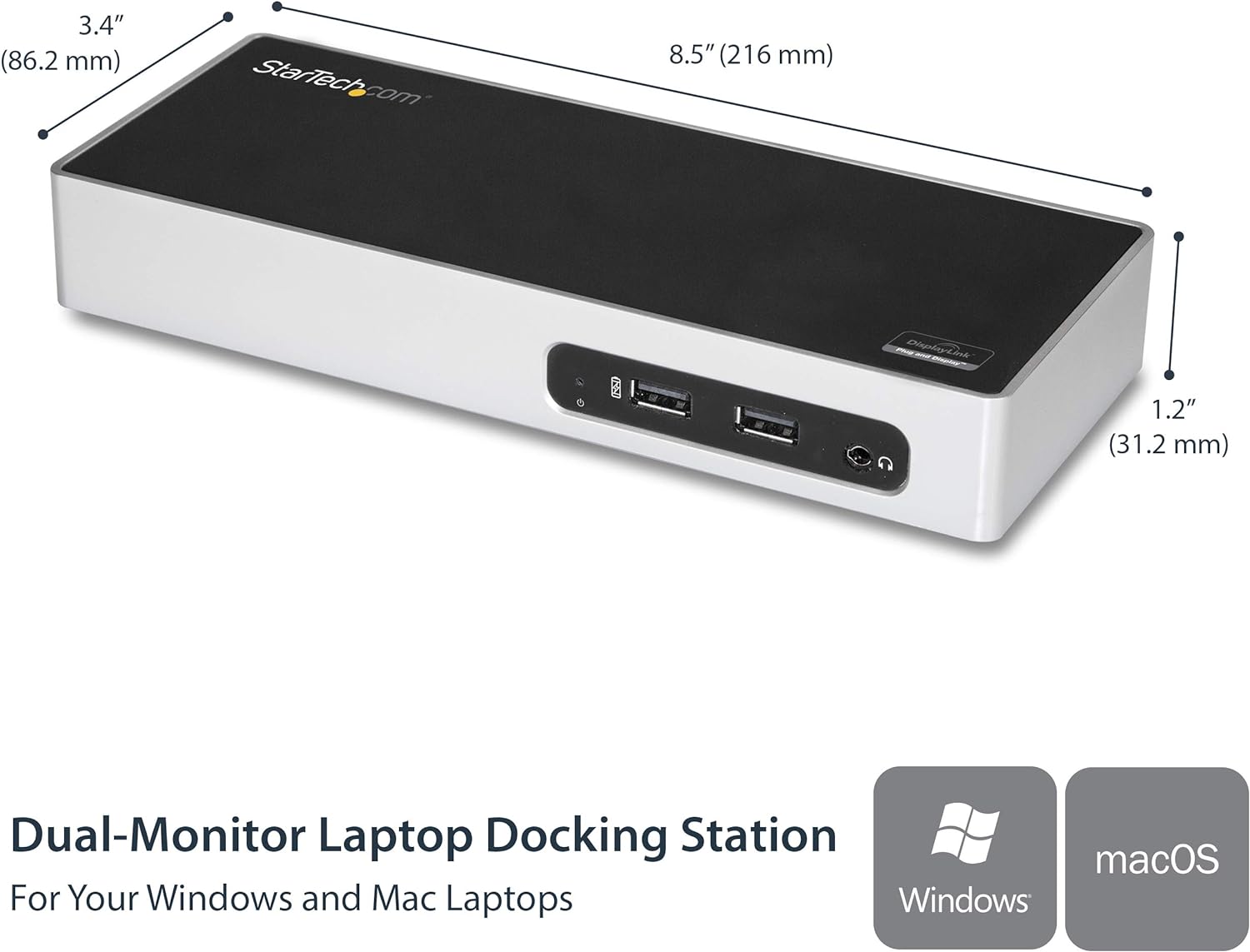 USB-A LAPTOP COMPATIBILITY: Certified by DisplayLink, this USB 3.0 docking station works with laptop brands including HP, Dell, Lenovo, MacBook, Surface Book/Pro 6, and Chromebooks.