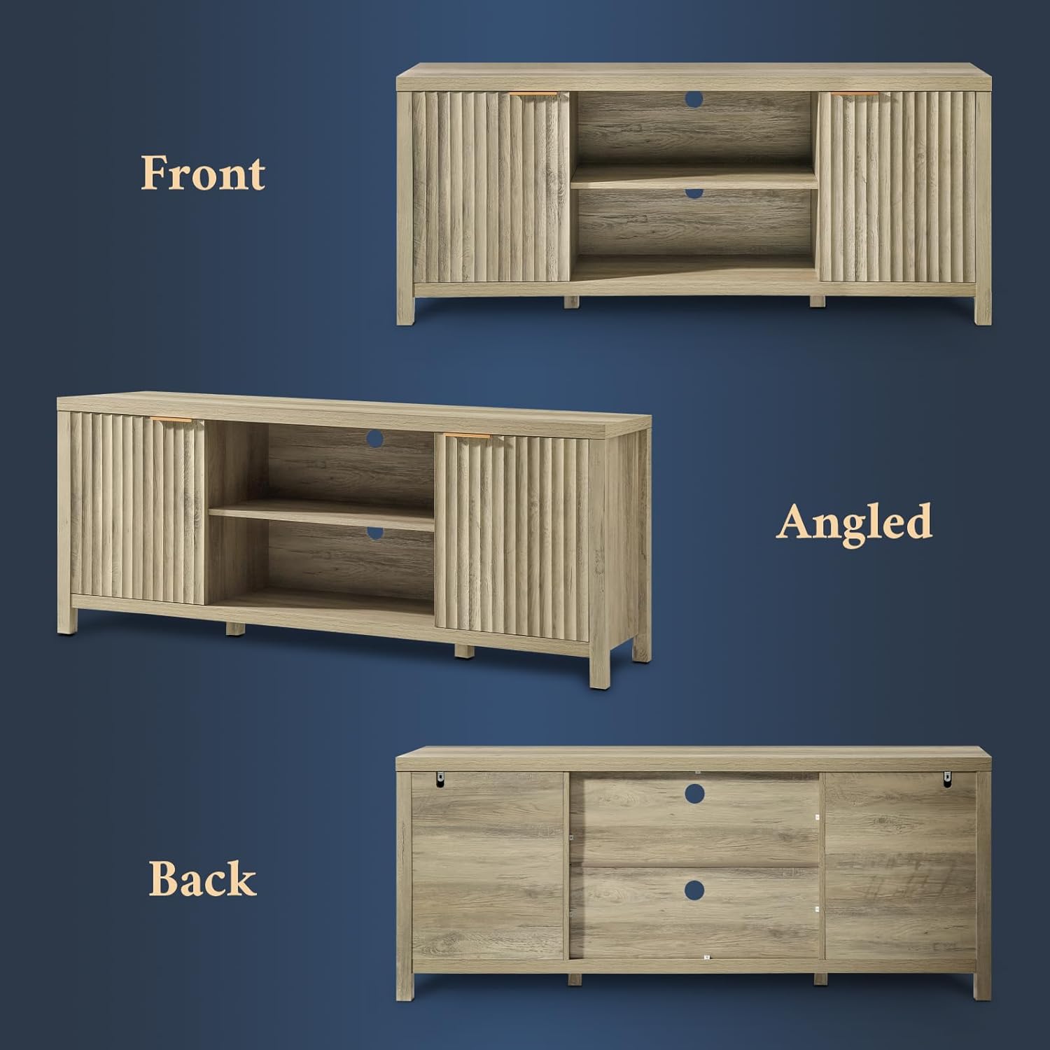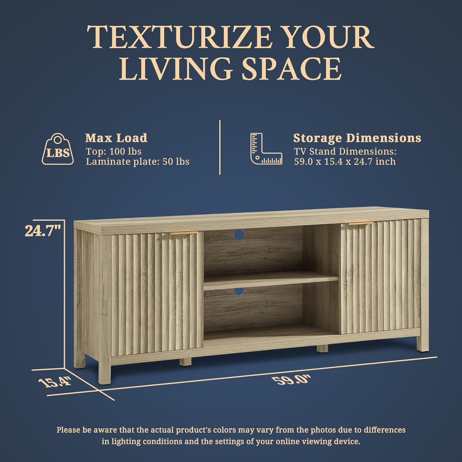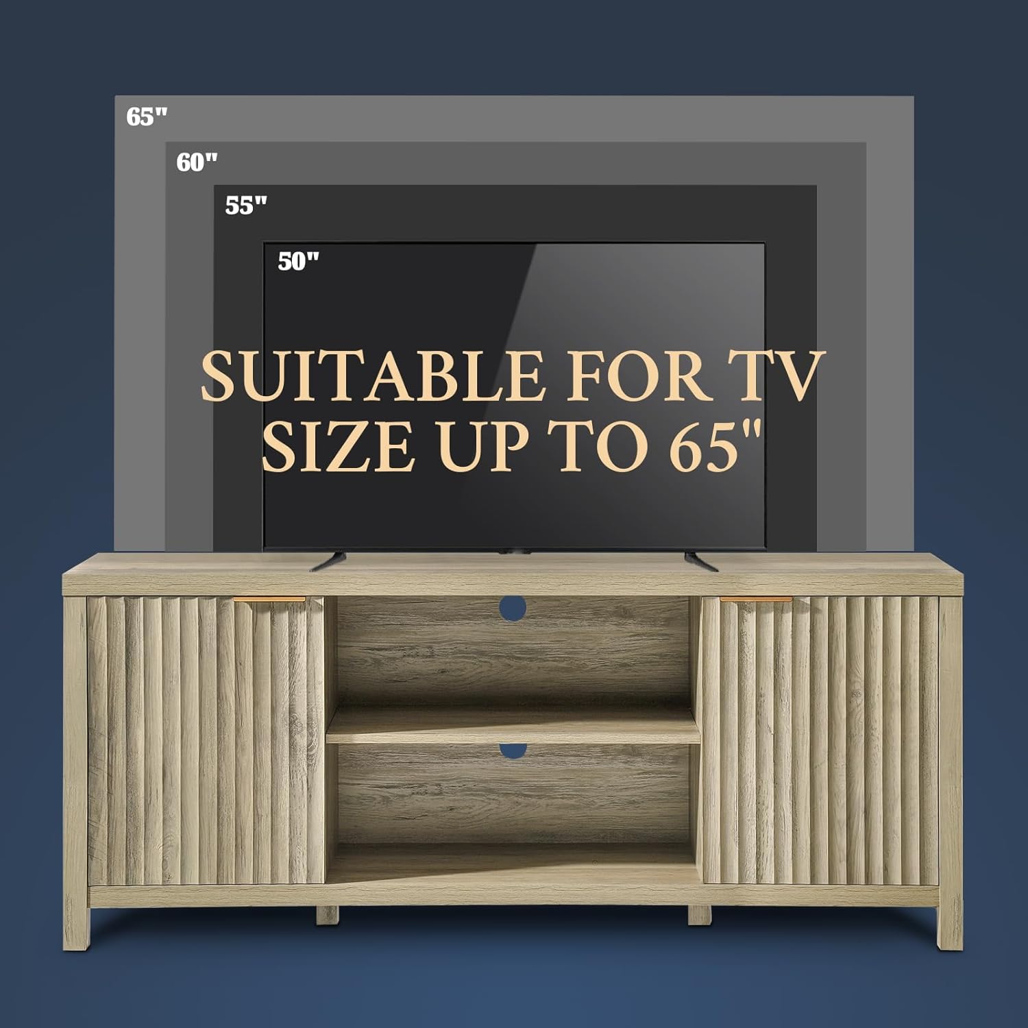 Accommodate televisions of up to 65 inches: This farm TV post is carefully designed, measuring 59 “in width and 24.7” high, to accommodate televisions ranging from 50 to 65 inches. Its size guarantees compatibility with several television models. With its perfect combination of functionality and aesthetic attraction, it serves not only as the Media Center for your family but also as a refined and good taste for your living room, bedroom, office or living room