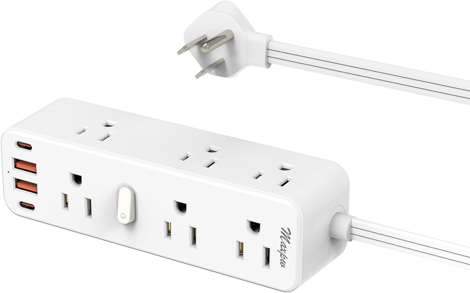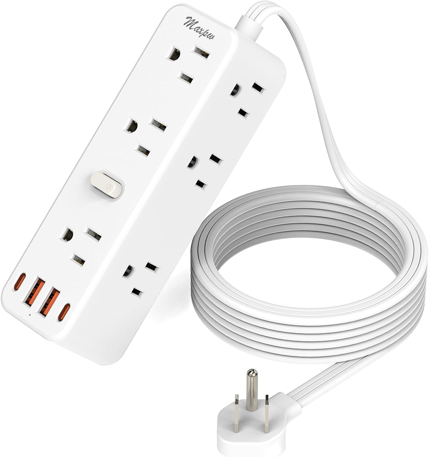 This compact and portable power strip contains 5 USB ports (2 USB-C) for your multi-port charging needs. The total USB output is 17W (Max 5V/3.4A). The Maxpw extension cord with multiple outlets is compatible with almost a full range of devices.