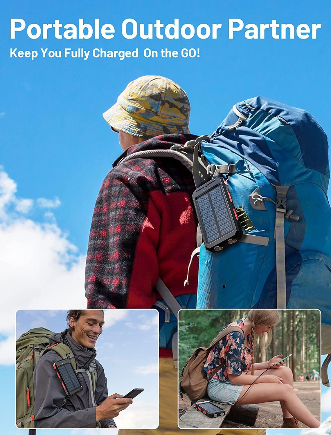 ✅USB & Solar Charging Modes: The solar phone charger can be recharged via USB and solar panels. However, the charging speed is subject to sunlight intensity and panel conversion rate, so it may take a long time to charge. USB charging is recommended for daily use and solar charging is only recommended for emergencies. NOTE: Please fully charge the solar charger with an adapter before outdoor travel.