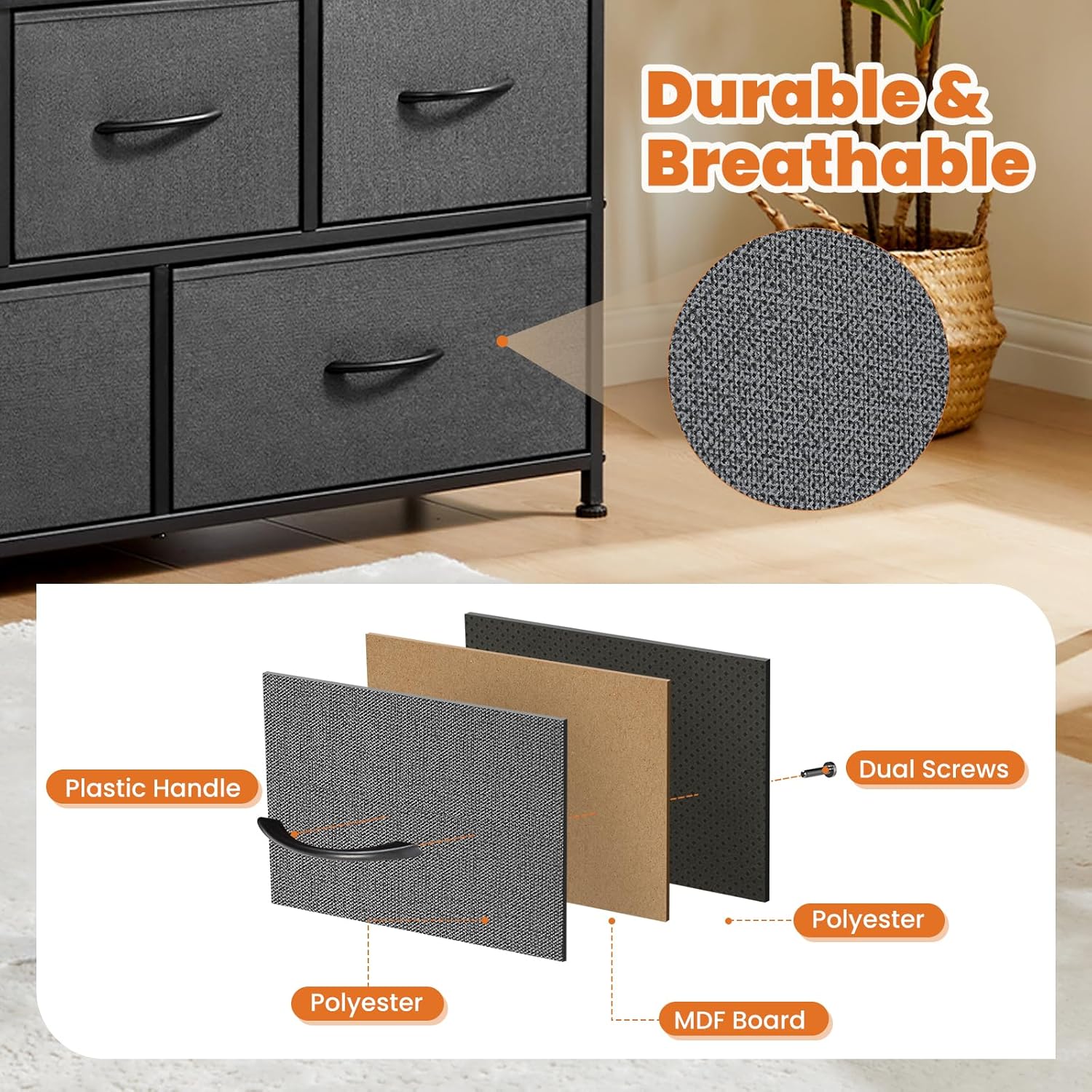 Sturdy Frame: The high-quality metal frame extends the life of the dresser and keeps it stable and sturdy at all times. With 4 height-adjustable legs to protect the floor from scratches, you can also adjust the balance of the dresser in small areas. In addition, we added an additional auxiliary function that is fixed against the wall. You can fix the dresser with drawers to the wall to prevent possible tilting and children climbing on it due to the terrain.