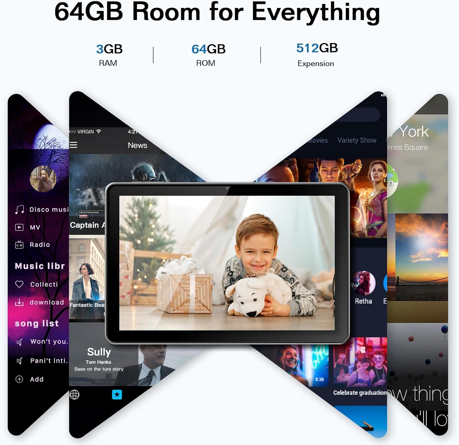 – Best On The Go Entertain Choice: Our tablets 10+ inch 64gb comes with 3GB + 64GB storage, big 5000mAh capacity battery, enables you to enjoying around 6-10 hours mix use for surfing, watching TV, reading books.