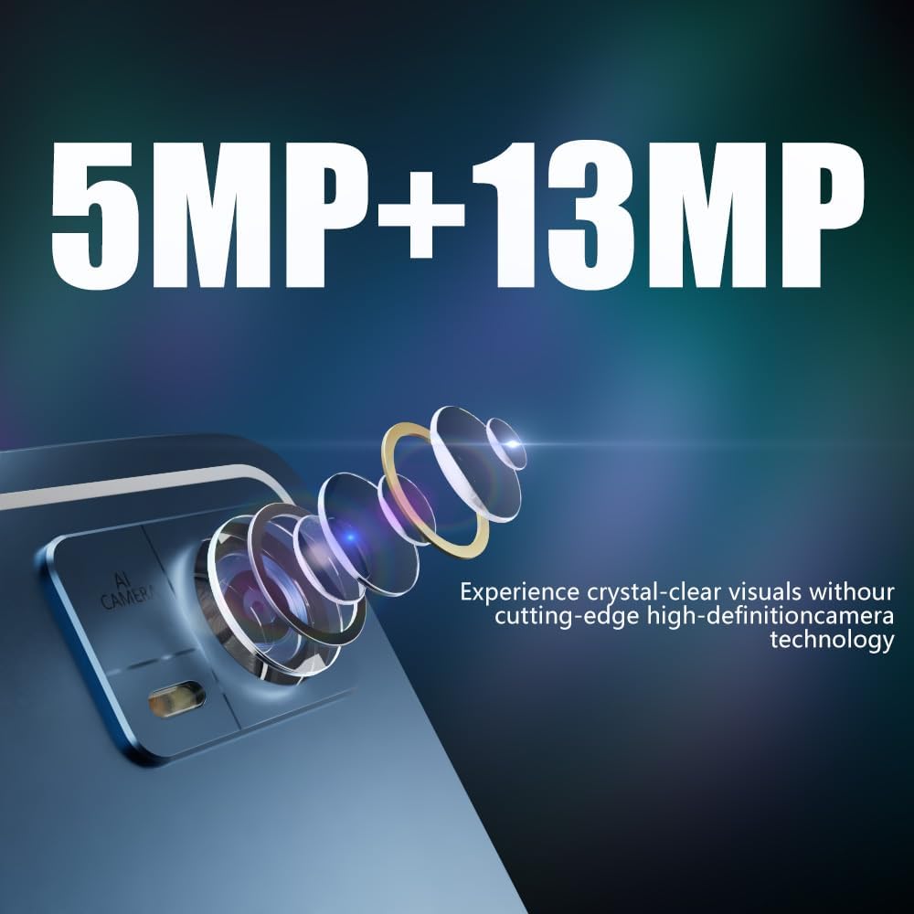 Perfect for Video Calls and Media – Dual Cameras & Quad Speakers Experience crystal clear video calls and immersive audio with our tablet that features a dual camera setup (5MP + 13MP) and quad speakers.