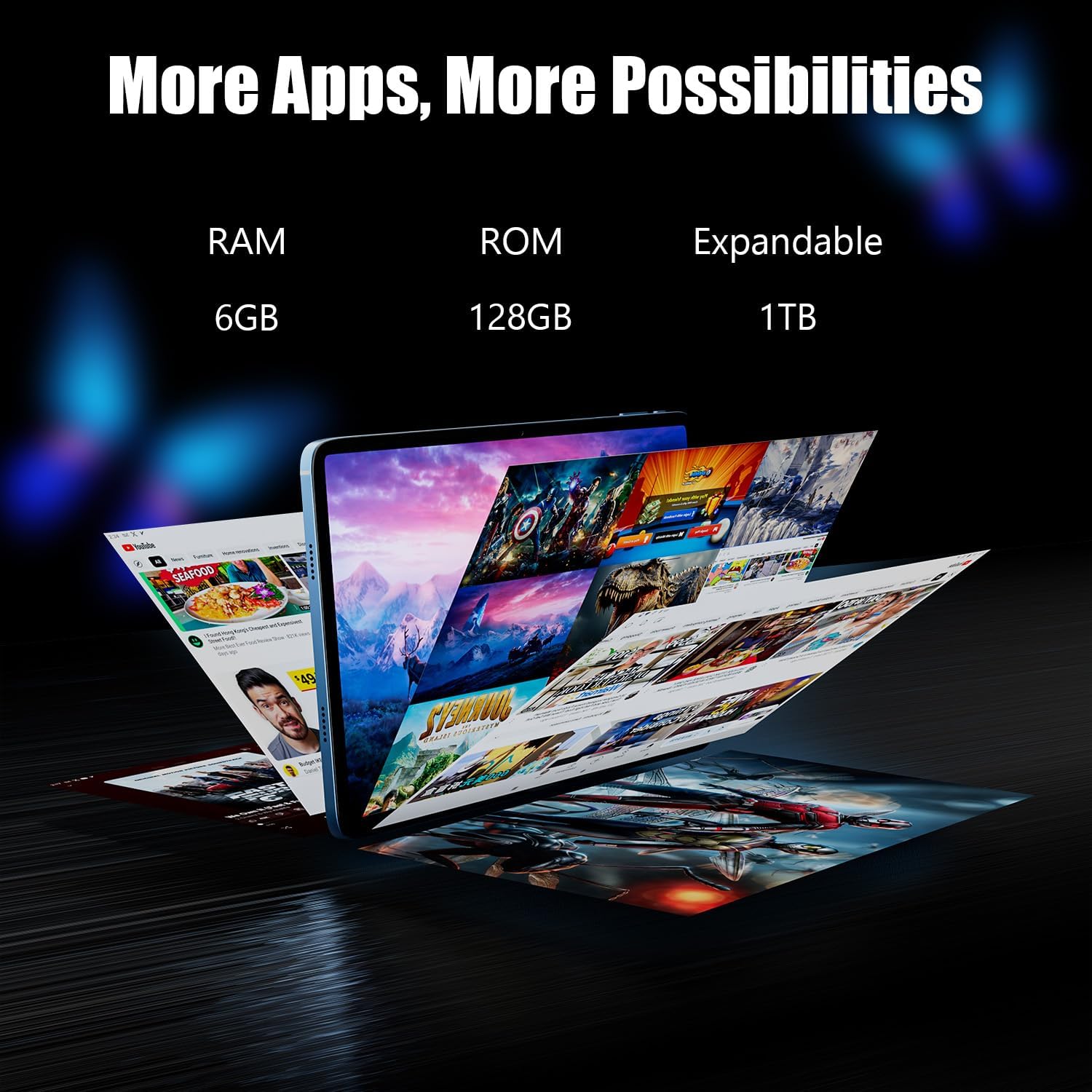 “The Power of Speed: Your New Tablet Upgrade” Equipped with a 2.0 GHz Octa-Core CPU and 6 GB of RAM, experience faster app loading, smoother multitasking, and smooth gaming like never before.