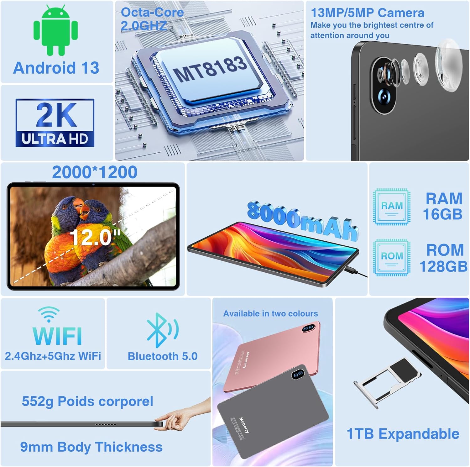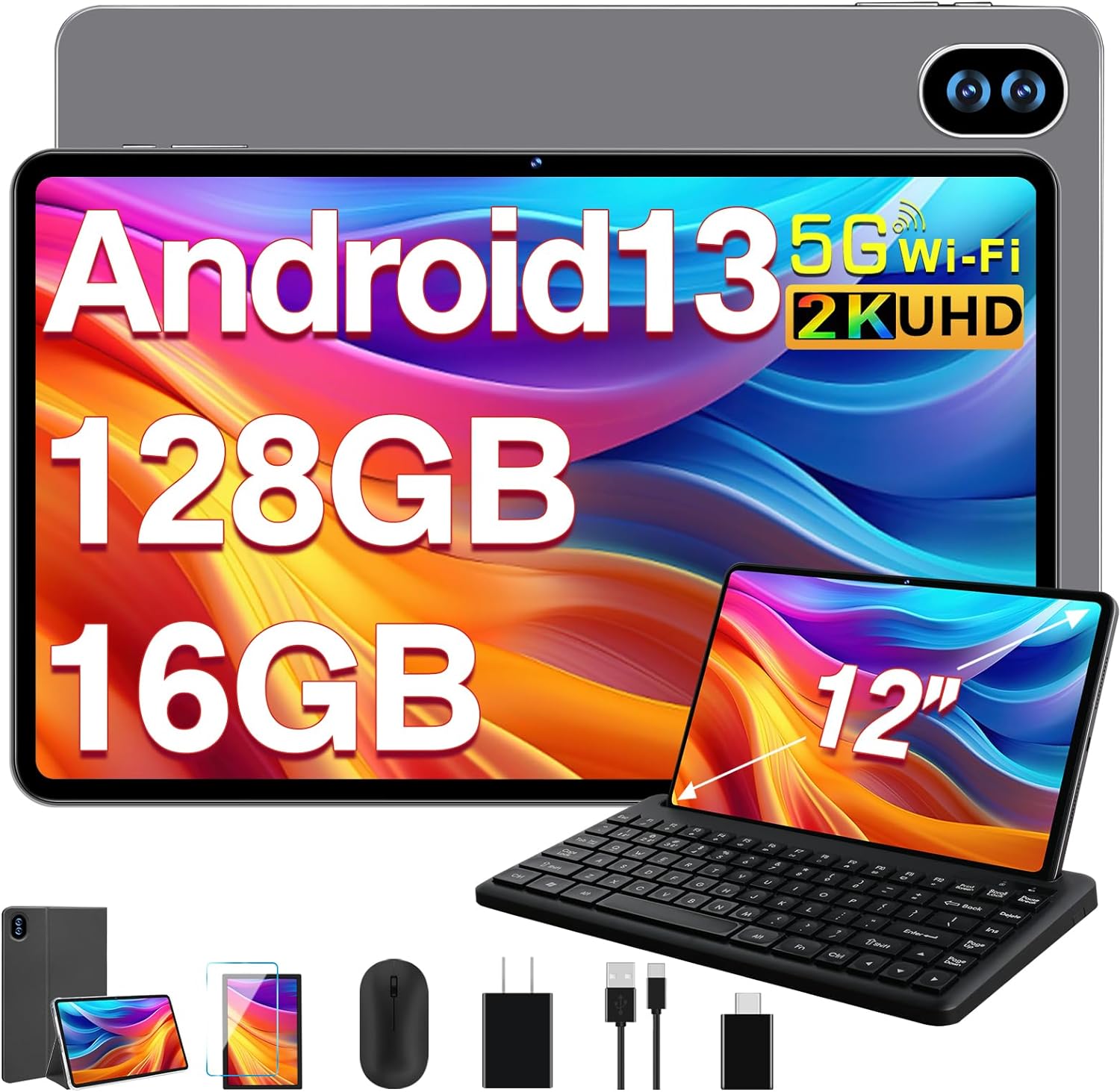Tablet 12 inch Android 13 Tablet 2K Screens,16GB RAM 128GB R…