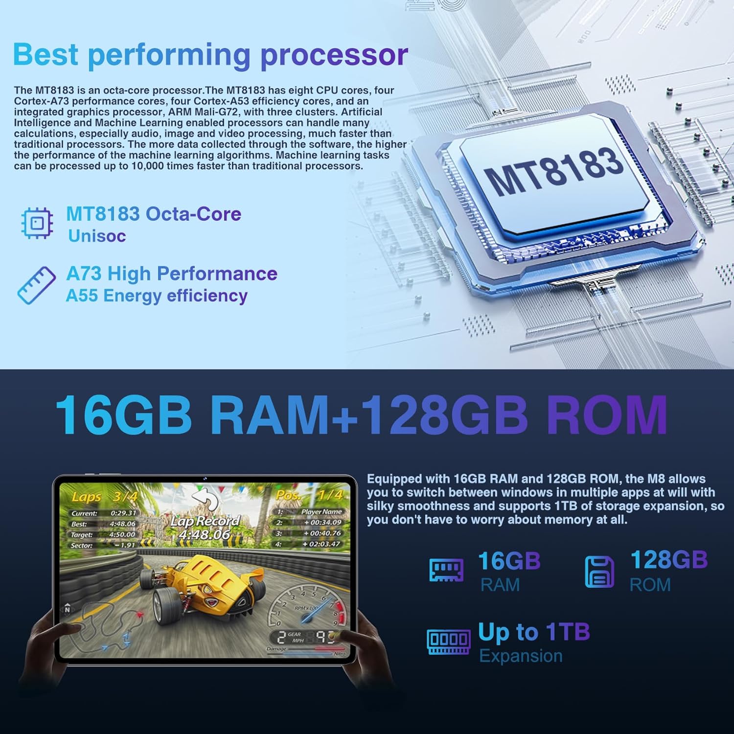 🎄【Android 13 System + Octa-Core Processor】The M8 Tablet is equipped with the latest Android13 system, which provides higher privacy and security and improves speed. Equipped with the most stable octa-core processor up to 2.0GHz, it has a fast startup speed and low power consumption. Functions such as screen recording enable easy multitasking and a perfect user experience. The M8 Tablet PC is the perfect choice for Christmas gifts.