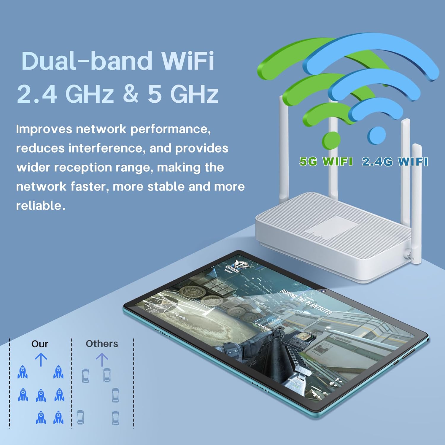 【2024 Latest Android 12 + 2.4G/5G Powerful Wi-Fi】DMOAO tablet adopts the latest 2024 version of Android 12 system and has passed Google GMS. Moreover, it supports 802.11ac high-speed dual-band and allows you to connect to 2.4g+5g WiFi networks. Android tablets can bring you personalized security systems, ultra-fast app launches, super smooth gaming, and stunning multimedia experiences.
