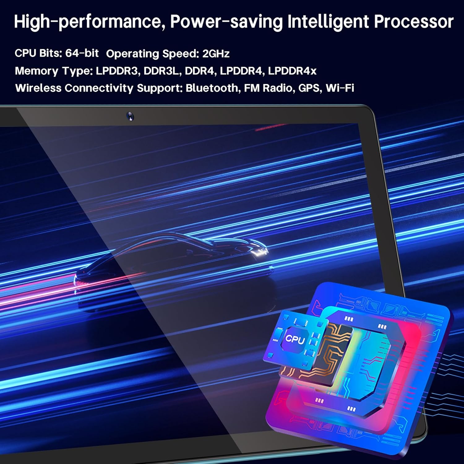 【8GB(4+4) RAM + 64GB ROM + 512GB Expandable】The Android 12 tablet PC packs a powerful storage combination of 8GB RAM (4GB+4GB achieved by expansion technology) and 64GB ROM, comes with a new generation 2.0GHz CPU with ultra-high performance and low power consumption, achieves faster and more stable running and storage speeds. Moreover, it can be expanded up to 512GB with a microSD card (card not included) for even more storage.