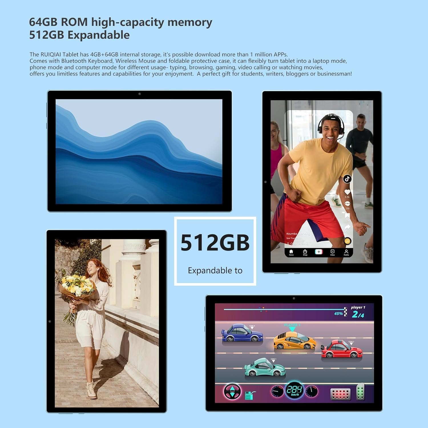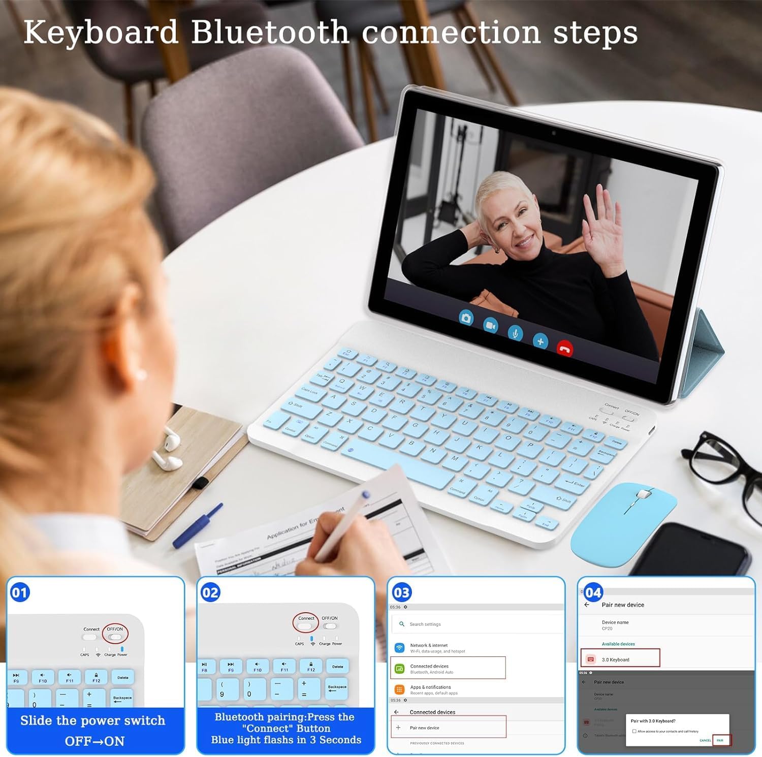 【2 in 1 Tablet with Keyboard】The 2 in 1 tablet supports tablet mode and computer mode. Equipped with accessories such as keyboard, folding case, mouse, stylus and tempered film, you can turn it into a work computer for work and entertainment anytime, anywhere.