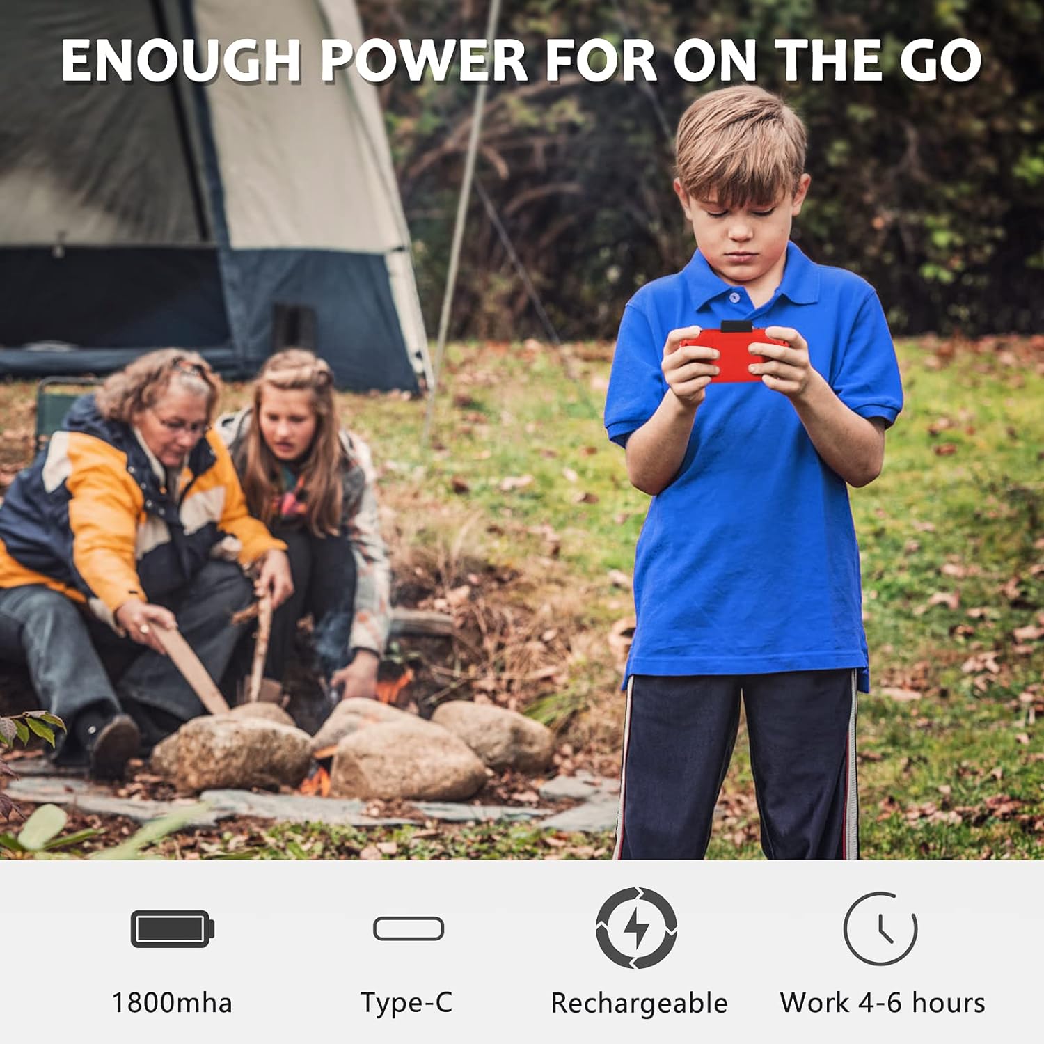 ENOUGH POWER FOR TRAVEL: The portable game console uses a 1800 mAh large capacity battery, enough to support you for 4 to 6 hours in the field, on a trip or in transportation. Equipped with type C cable, allows you to play while charging.