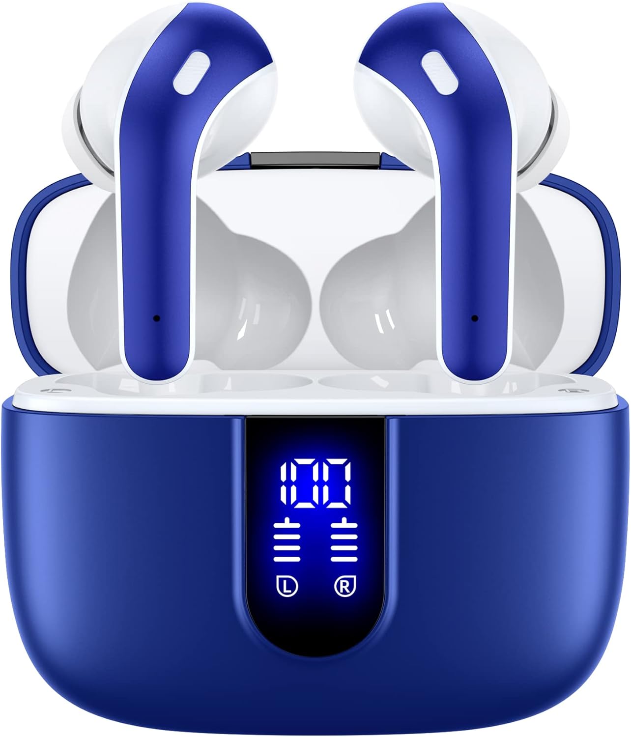 LED Power Display & 60 Hours Playtime: Dual digital power LED display outside the case shows the power level of the charging case and earbuds. When charging the case, the LED light will start flashing from 1 to 100. When you put the earbuds into the case, they will start charging. The charging case with 470mAh battery capacity can provide an extra 4 times full charge for both earbuds, each earbud can last for 6 hours on a single charge. So you can enjoy 60 hours of music time in total by using them in turns.