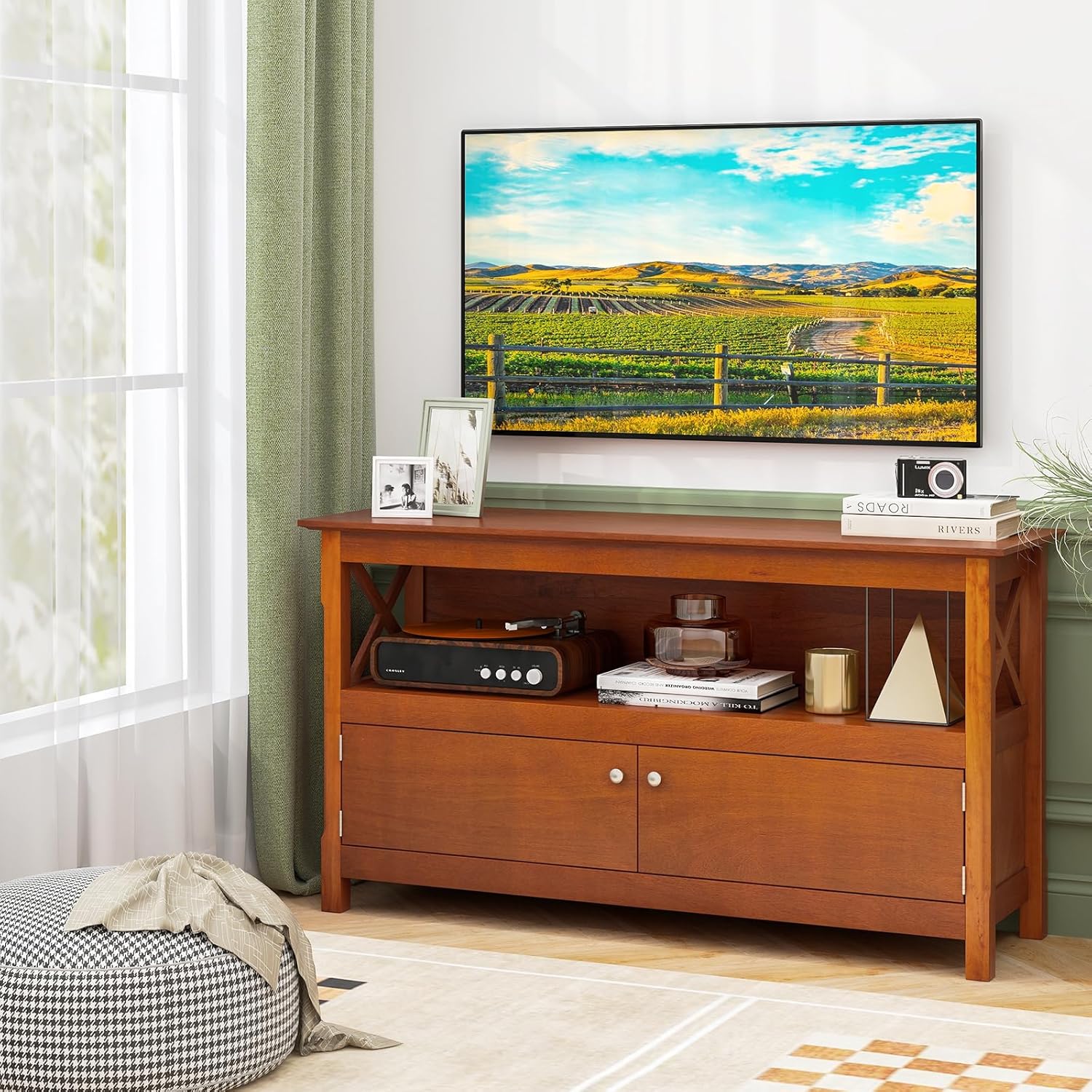 Tangkula Wooden TV Stand for TVs up to 50 inches, X Shape…
