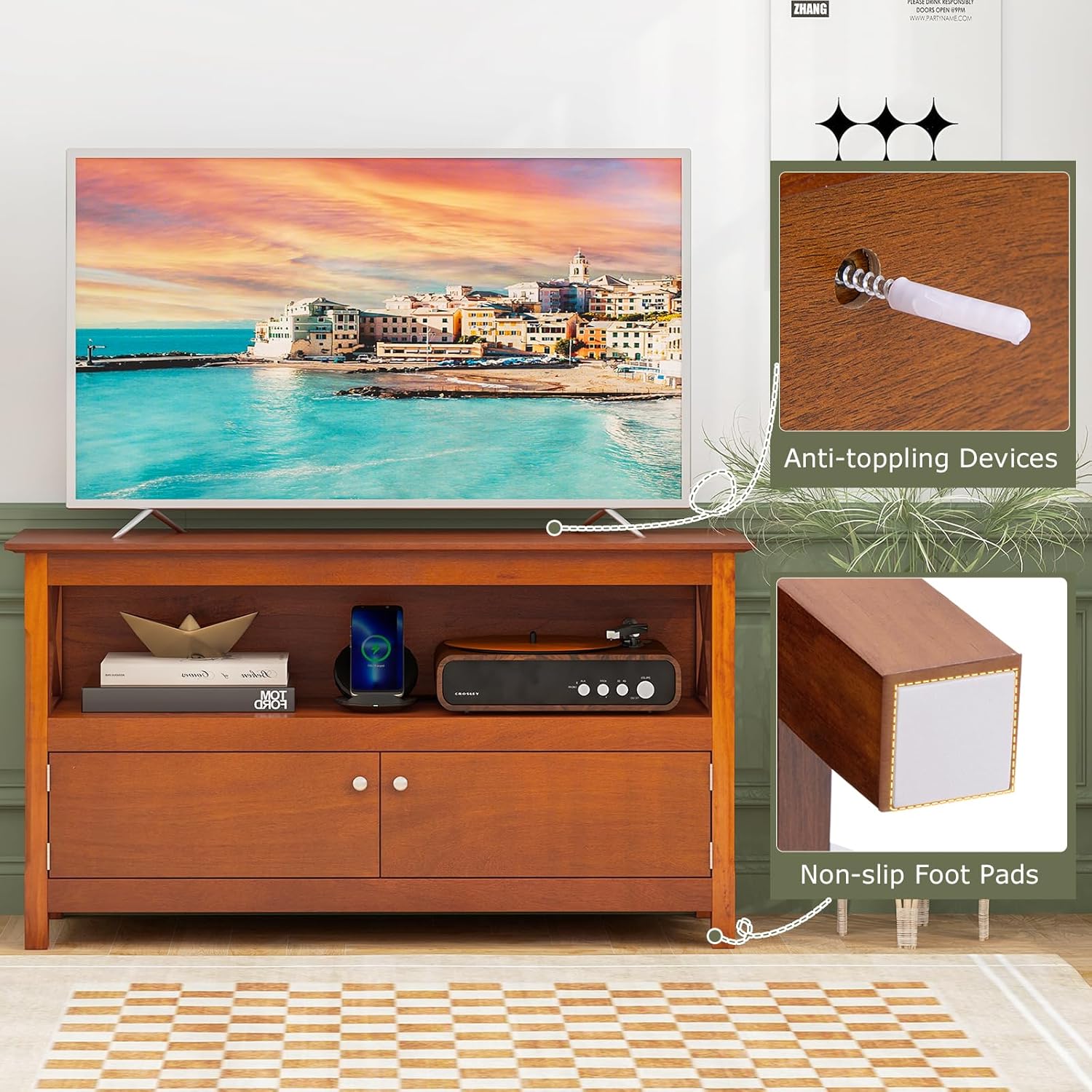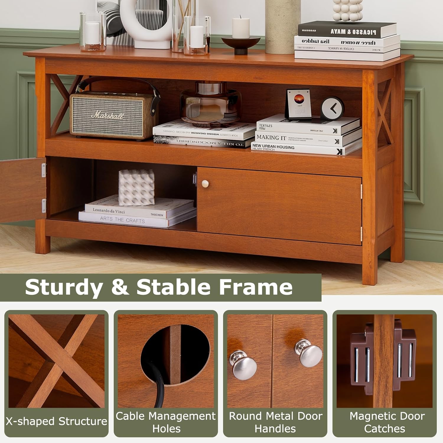 【Multifunctional Stand】Thanks to its wide application, this wooden stand not only serves as a TV stand that is large enough to accommodate TVs up to 50″, but also used as an entertainment center, storage console and table entryway that allows you to place it in different places, such as bedroom, living room and more.