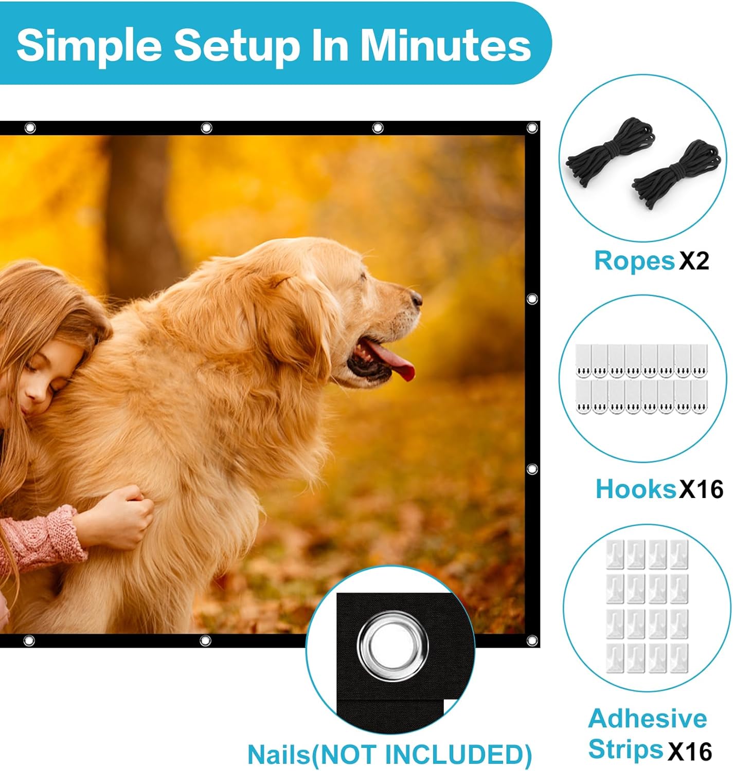 Professional after-sales service: Comes with 1 rear projection screen, 2 * 5 meters ropes and 16 pieces hooks. Note: Please feel free to contact us if you have any problem with our TV projector screen, we will try our best to solve it for you. . And this foldable video projector screen can only be washed by hand, not by machine.