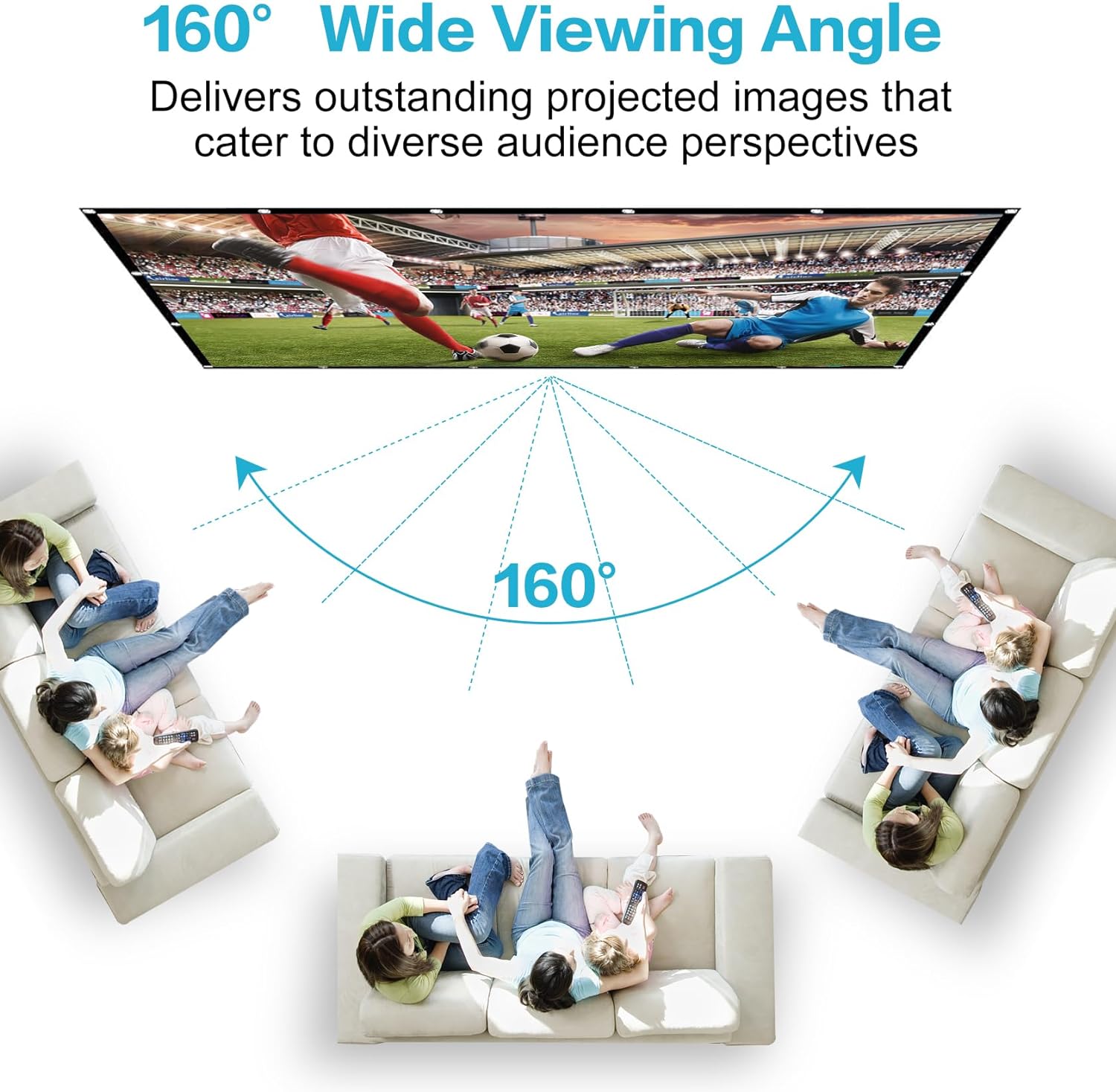160° Wider Viewing Angle: The outdoor projector screen with a wide viewing angle of up to 160° and a large size of 120 inches, which means you don't need to sit directly in front of the screen, you just need to select the display more comfortable. Posture to enjoy a wonderful night at the movies. Even if you want to invite your neighbors or friends to watch the movie together, it won't look crowded, because our portable projector screen supports double-sided projection, you don't have to worry about crowds anymore.
