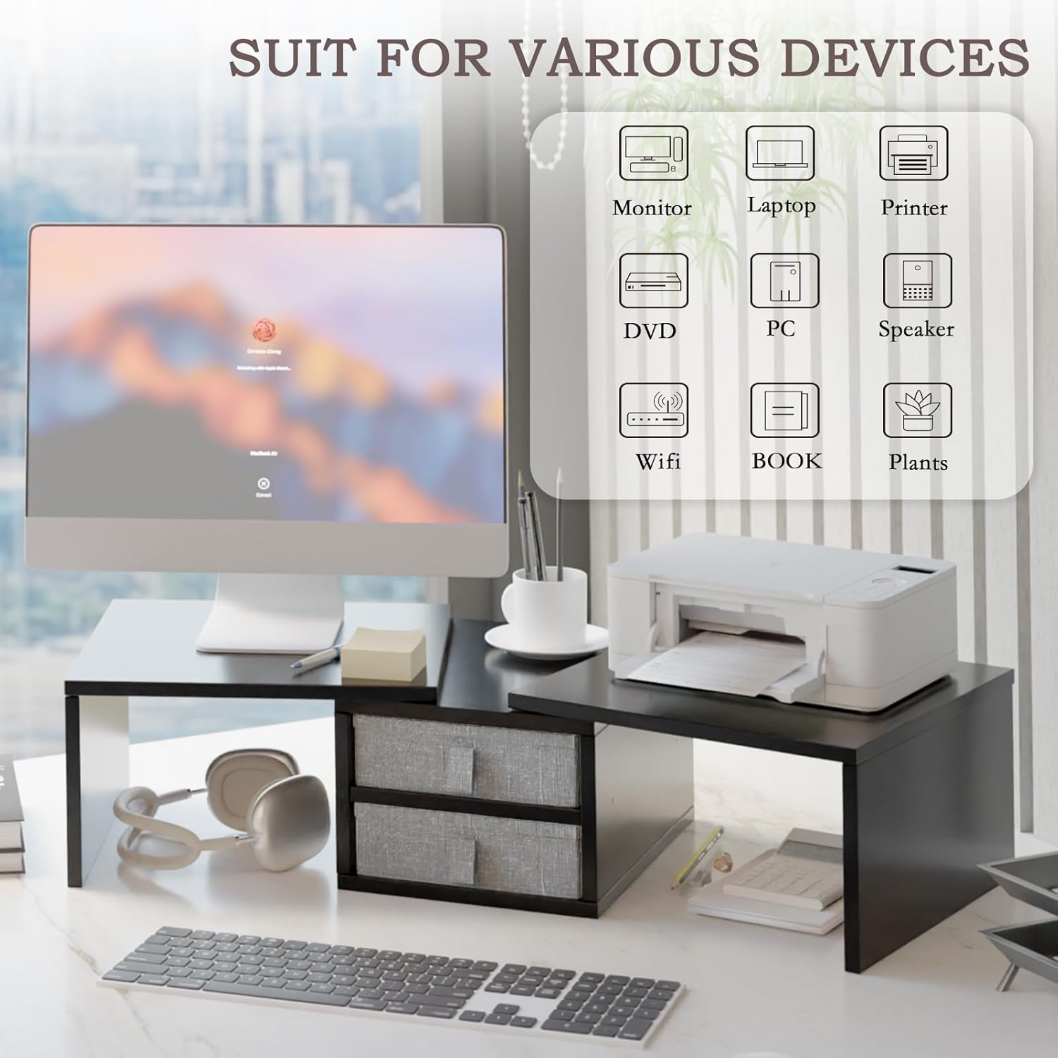 【Versatile term for 2 devices】 Dual monitor represents 2 monitors, laptops, printers, computers. This 3 shelves desktop is designed to accommodate all its office equipment. Its versatile design guarantees that it fits your work space, which makes it an assistant to your home and office.