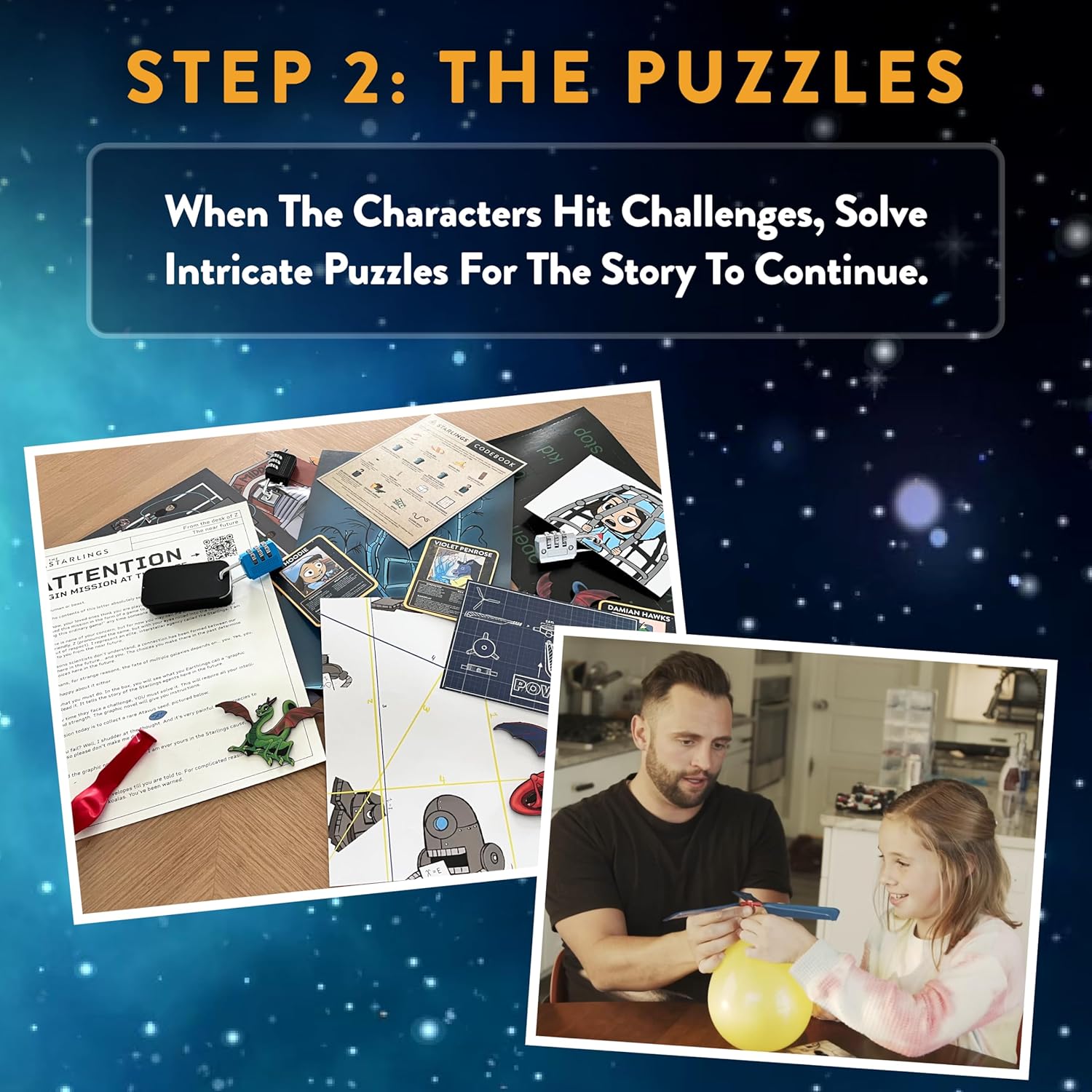 🚀 Full box for epic fun: Starlings Box One includes a graphic novel of 80 pages, 6 games of immersive exhaust room puzzles, collectible cards and a 40 -minute digital audiovisual experience. For 1-6 players, from 10 to 110+.