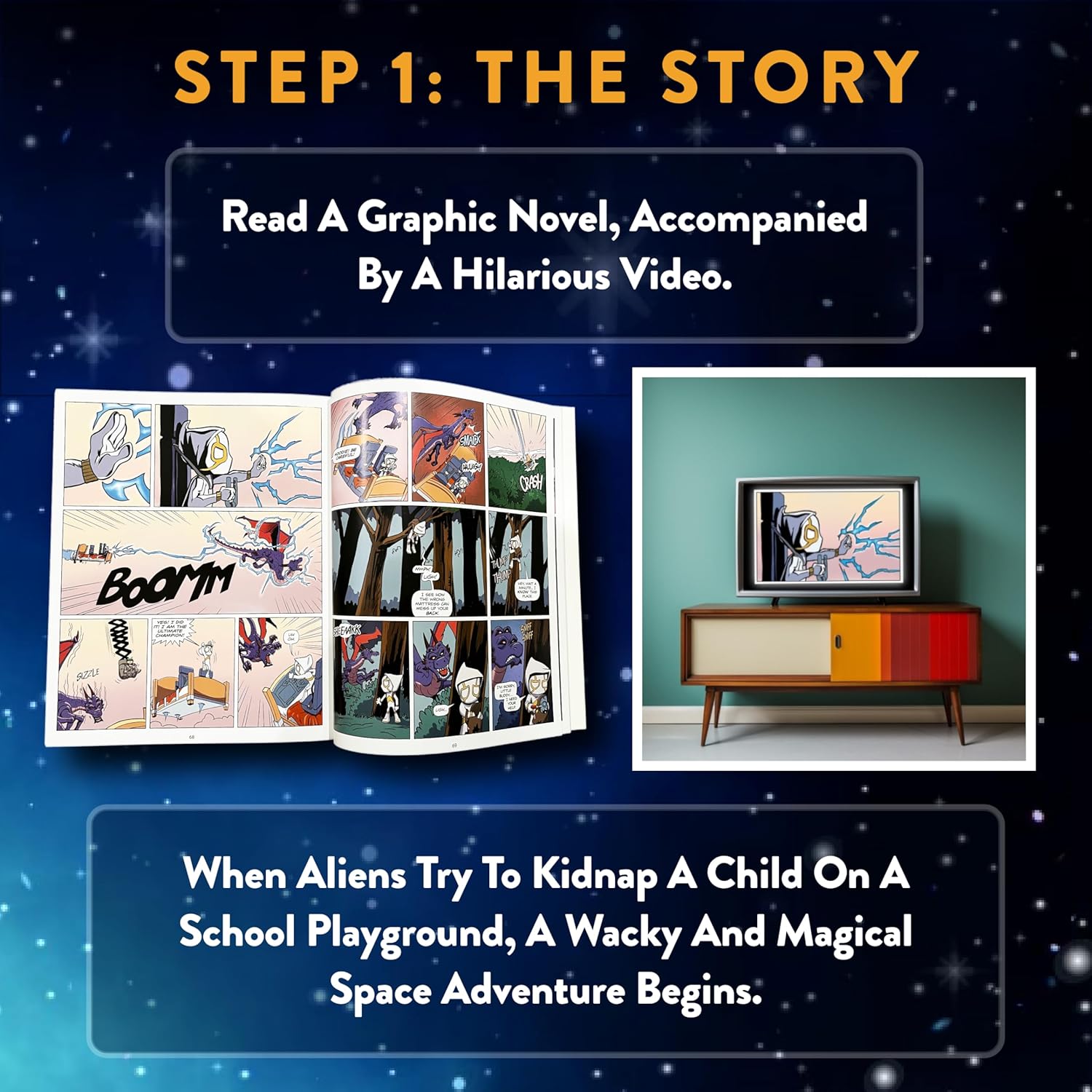 🚀 Enter the story: First follow the hilarious story in a beautiful graphic novel and video; Then enter yourself solving puzzles to move the story.