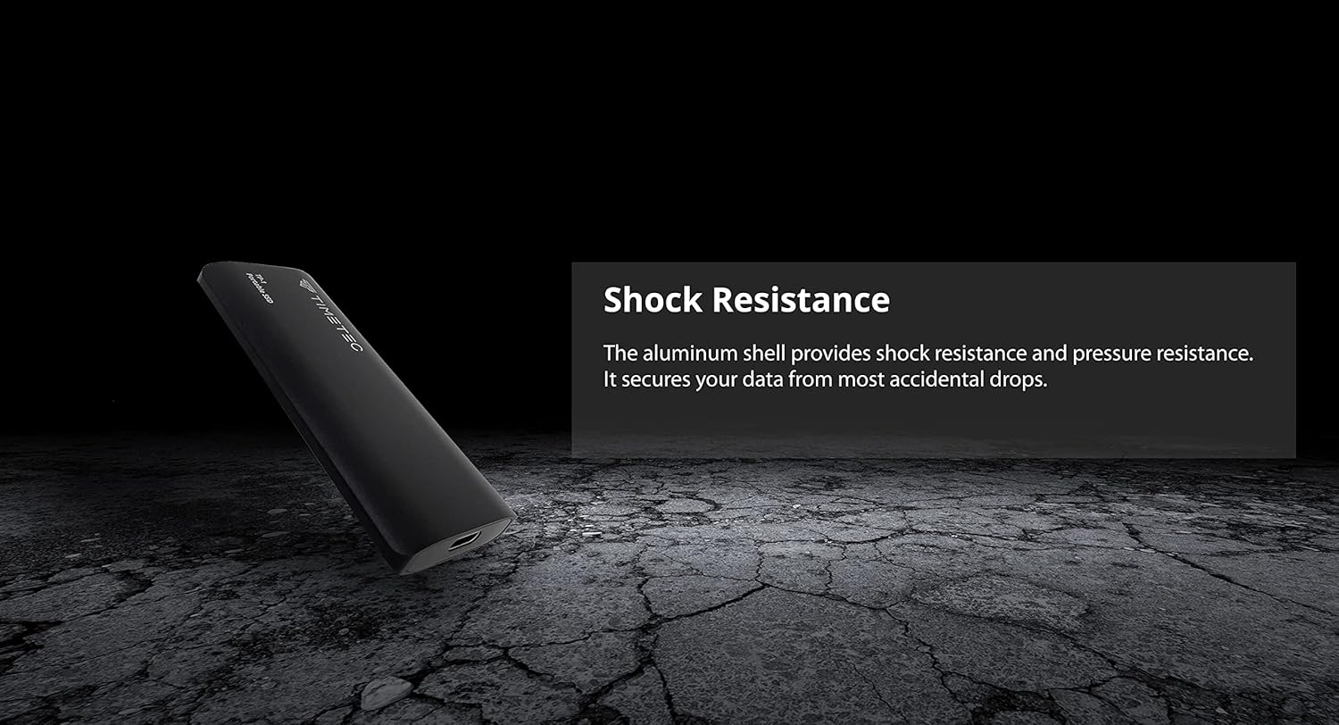 This external SSD is made of aluminum material, which provides the resistance resistance to the shock.