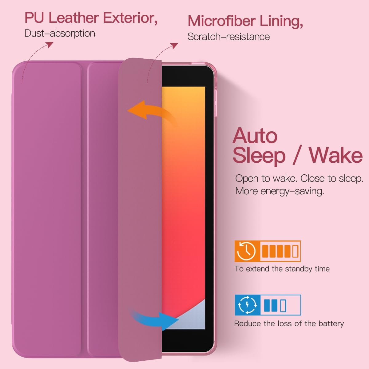 Auto Wake/Sleep: The iPad 8th generation case with auto wake/sleep function is easy and convenient to use. All functions and controls are accessible with the case on.