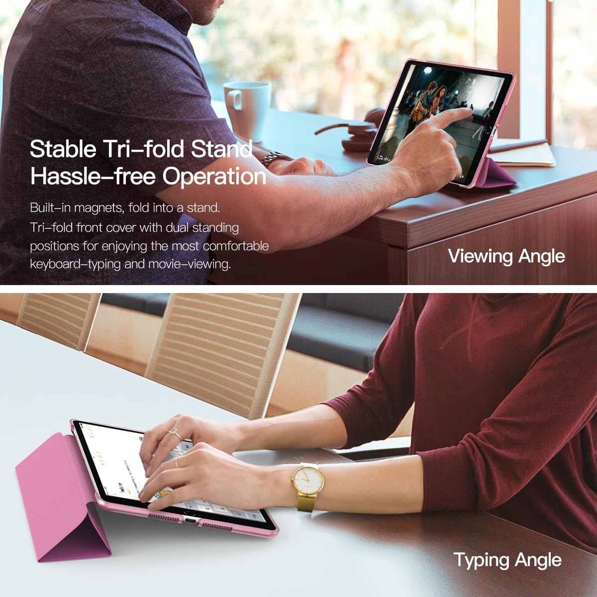 Comfortable Stand Case: This iPad 7th Generation case with tri-fold stand provides a comfortable stand position for watching movies or typing.