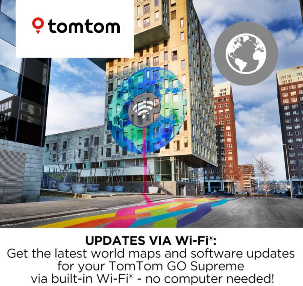 World Map Updates via WiFi – Get the latest world maps and software updates for your TomTom GO Supreme GPS navigation device via built-in WiFi – no computer required. Control Method: App