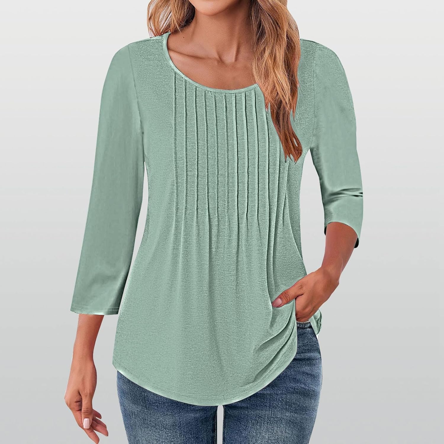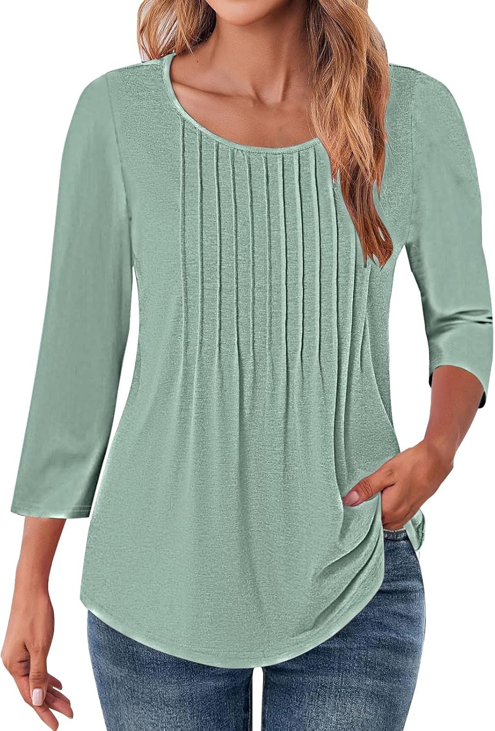 Tops for women 3/4 Manga shirts 2025 Tunic Tunic Creweck pleat …