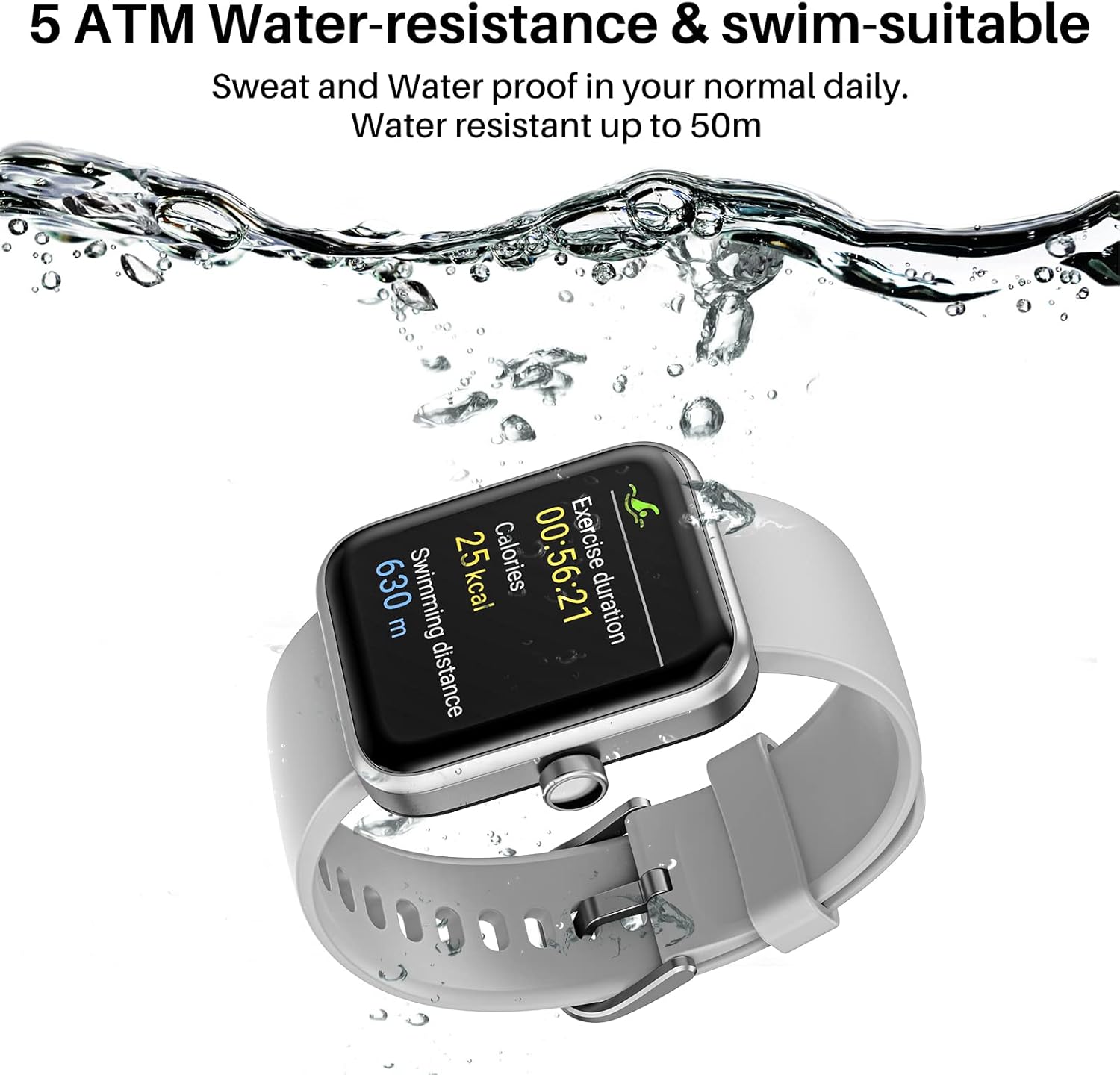 [Long-lasting Battery Life & 5ATM Waterproof] The great battery capacity (210 mAh) and low energy consumption design offer greater resistance. It could last approximately 7 days when it is in automatic monitoring mode for heart rate or 7 days when it is in instant detection mode. Tozo Smart Watch is designed with an waterproof rating of 5Atm (50 ma water test), so it is not necessary to worry when they use it while they swim or suppose.