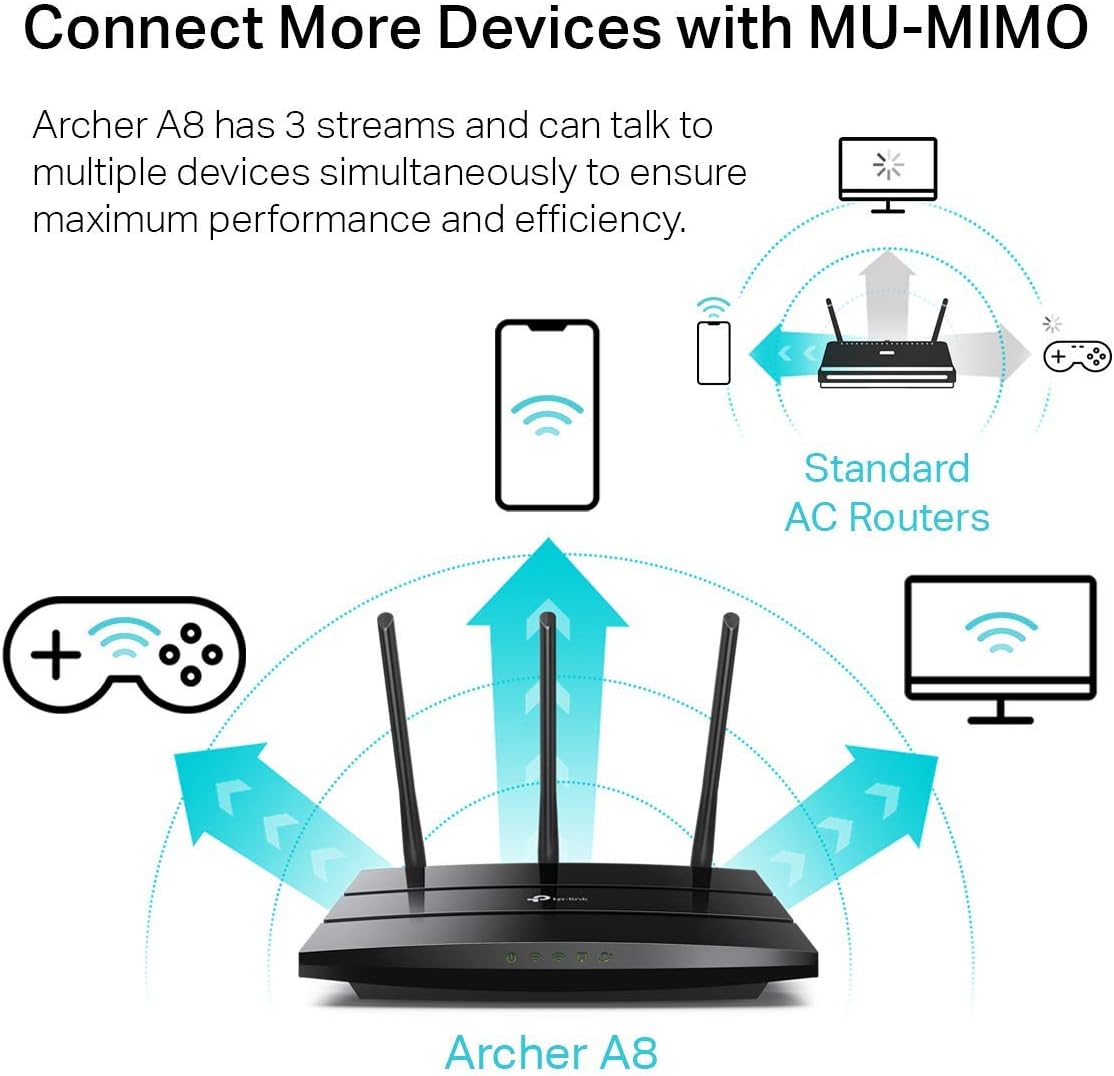 MU-MIMO Gigabit Router, 3 simultaneous data streams help your devices achieve optimal performance by making communication more efficient