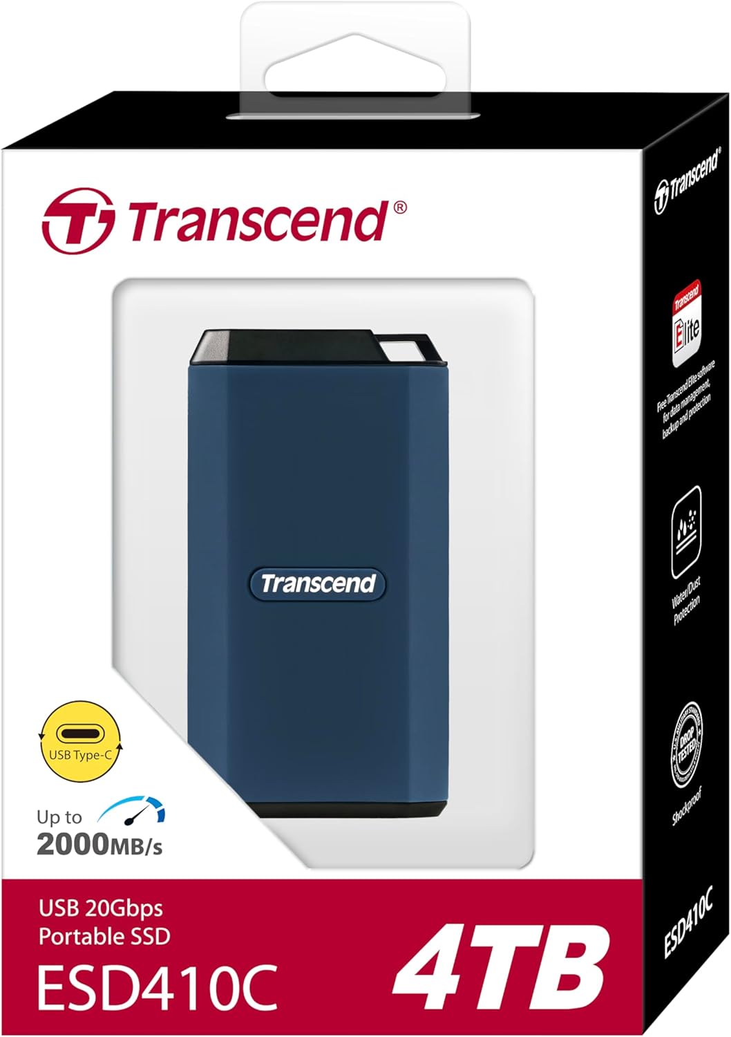 Transcend’s ESD410C portable SSD delivers blazing speeds and impressive durability. With a transfer rate of up to 20Gbps, handling large files is virtually a worry-free task. Compliant with the US military-grade drop test, the compact ESD410C can withstand a 3-meter drop and meets the IPX5 standard, safeguarding the data inside with a high level of protection, suitable for outdoor photographers, travelers, and content creators.