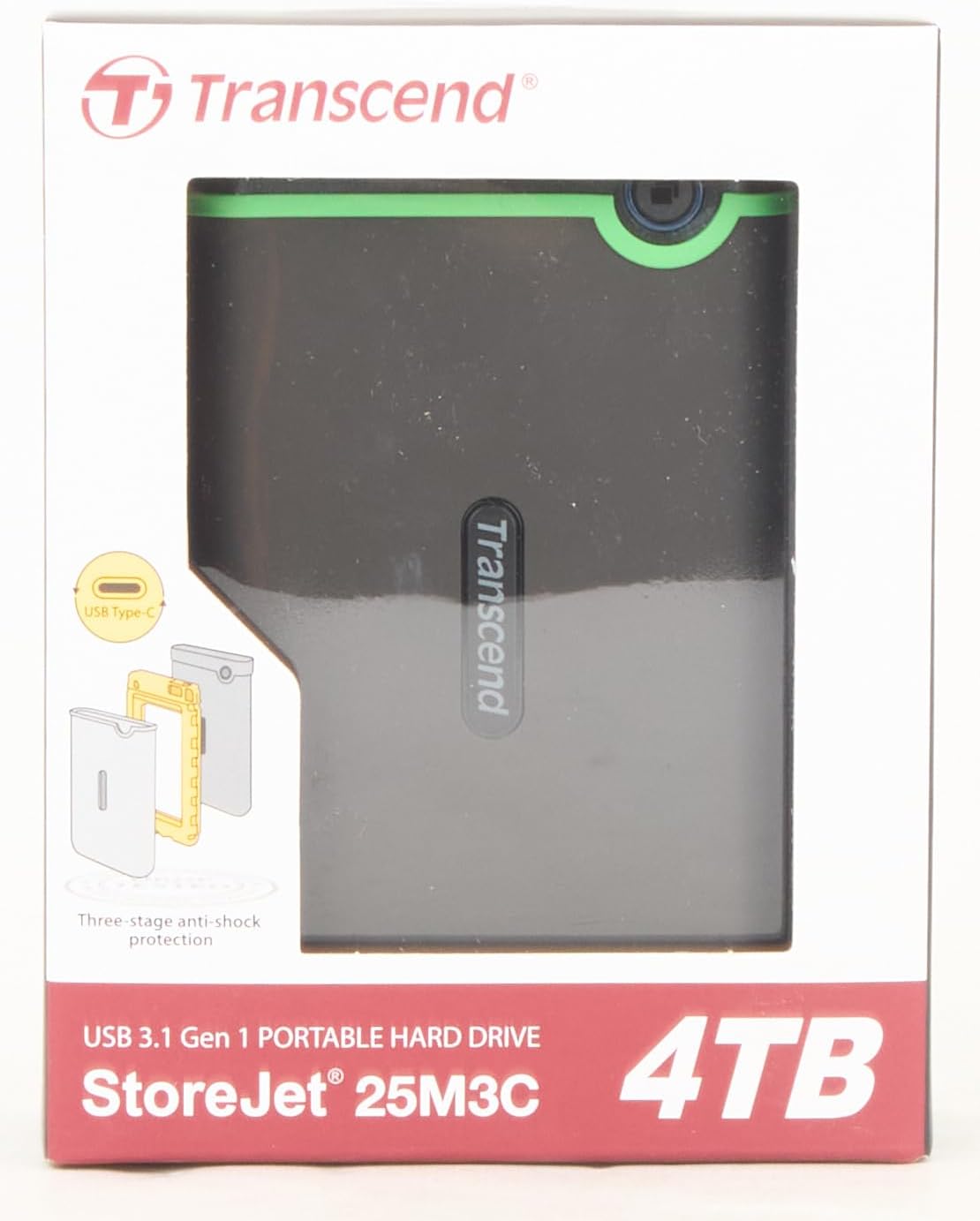 Transcend TS4TSJ25M3C 4TB StoreJet USB 3.1 Type-C Rugged External Drive…
