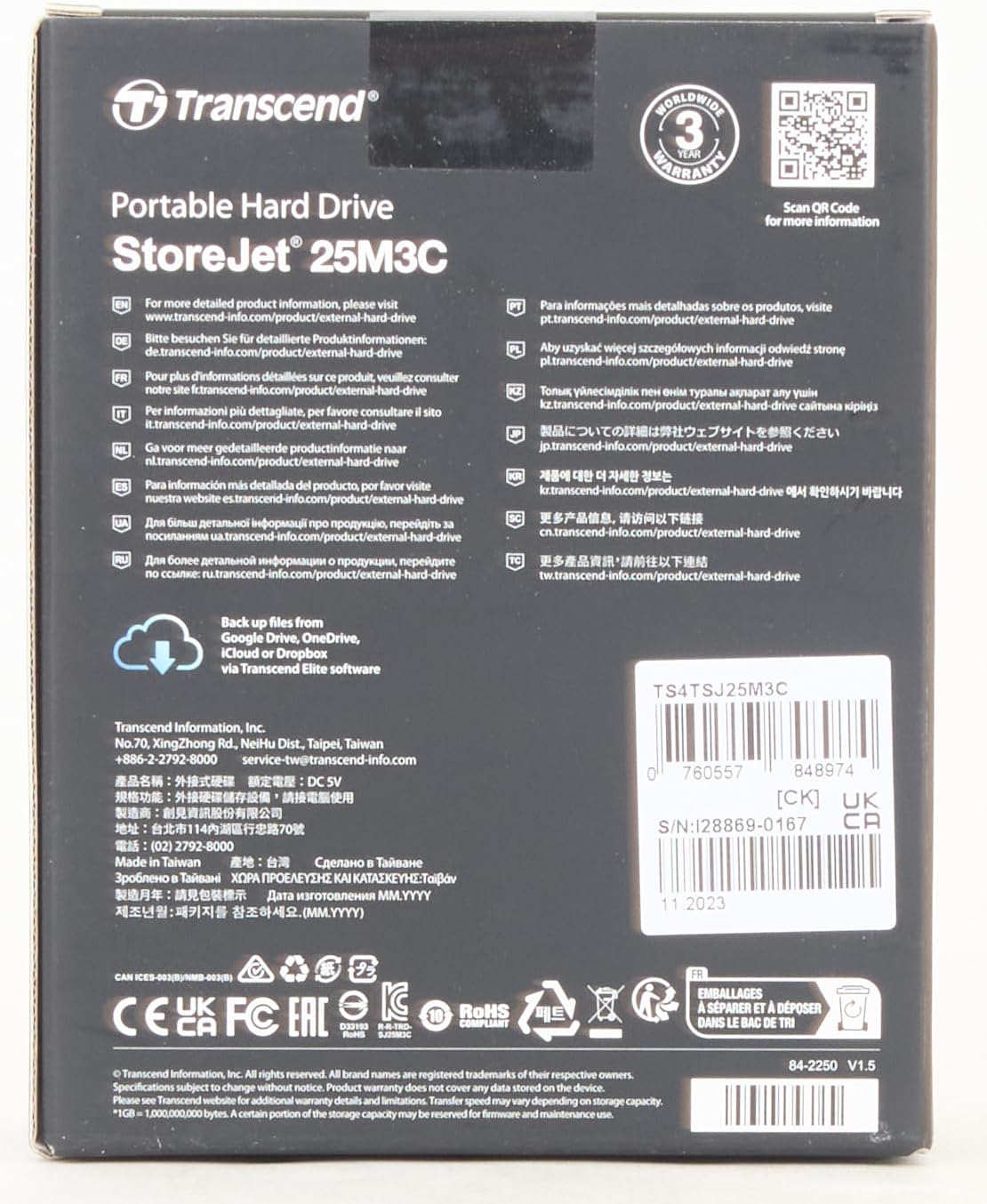 Transcend’s StoreJet 25M3C rugged external hard drive features a USB 3.1 Gen 1 interface and a USB Type-C port for unmatched transfer speeds, and comes with a USB Type-C cable and a Type-C to Type-A cable for maximum compatibility across devices. Shock-resistant qualities ensure superior protection for data stored on the drive.
